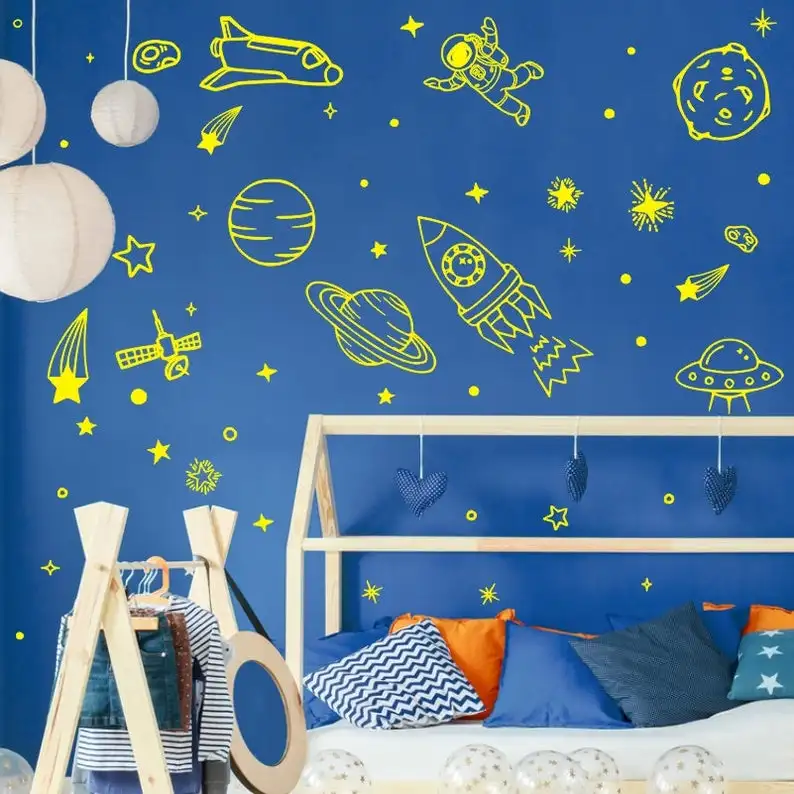 Наклейки на стену в космическом стиле, простые объемные настенные С...