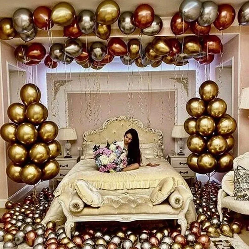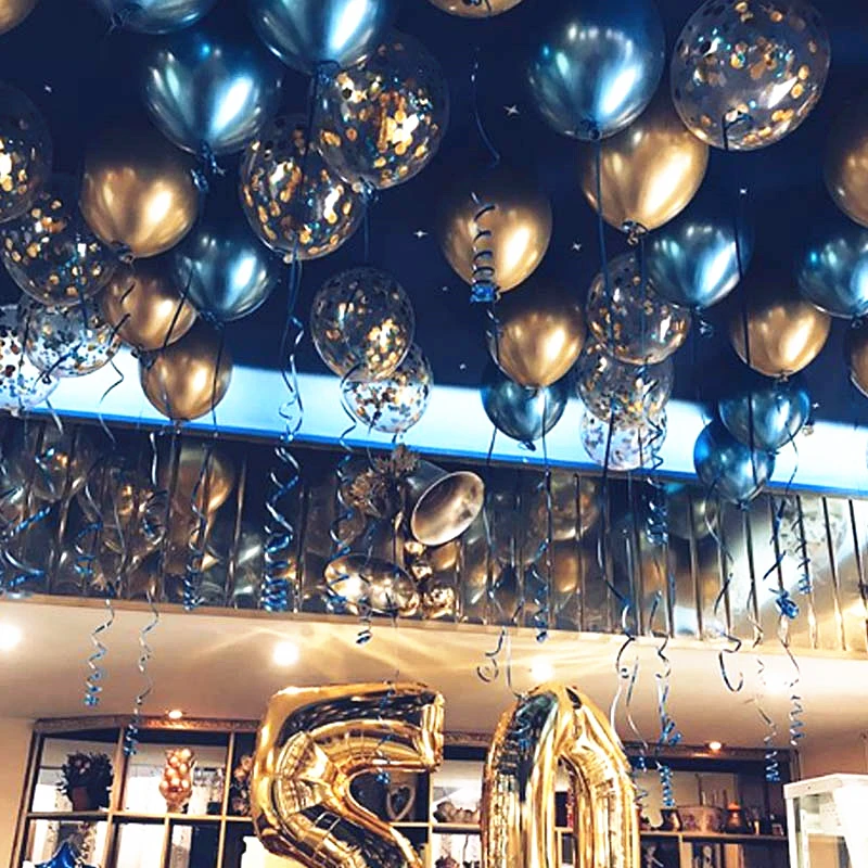 Воздушные шары латексные с конфетти, золотистые, металлические, блестящие, 12 шт.
