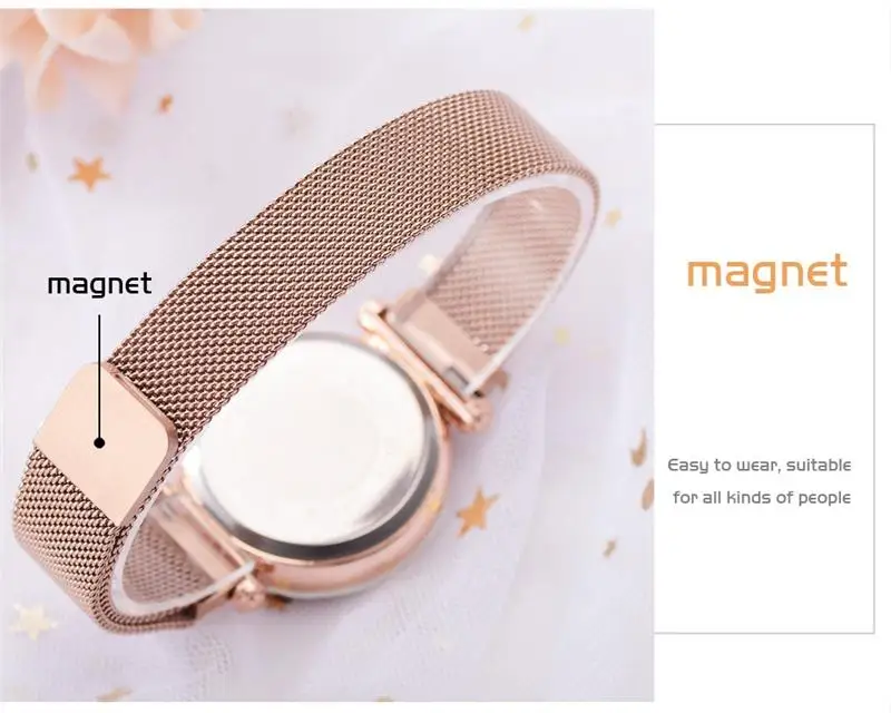 Женские кварцевые часы с сетчатым браслетом, с магнитной пряжкой