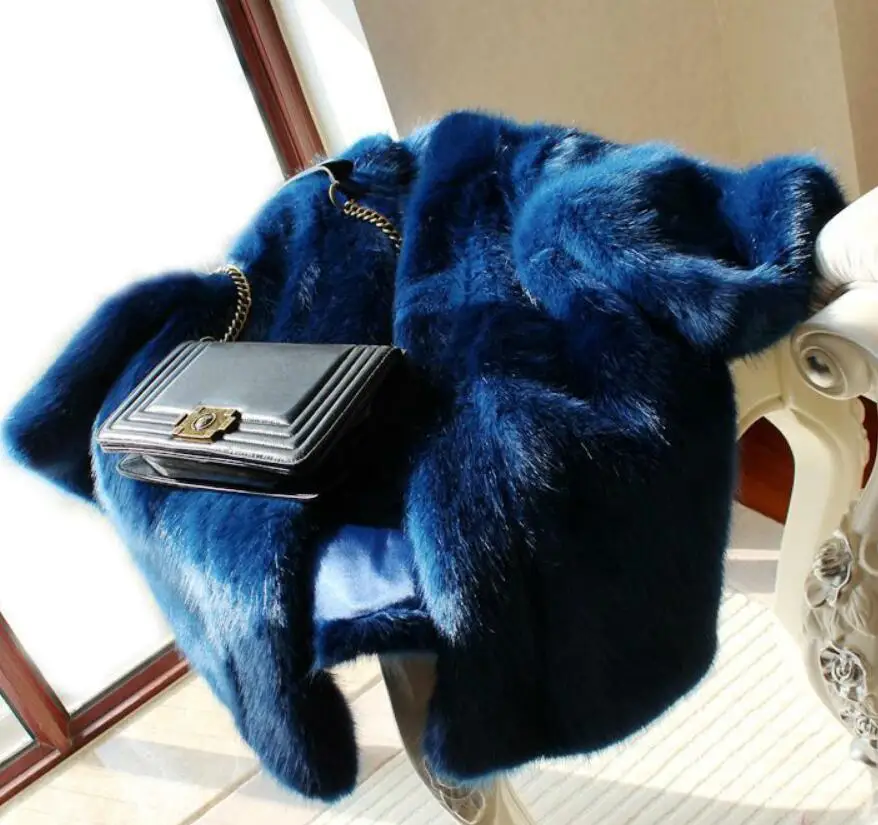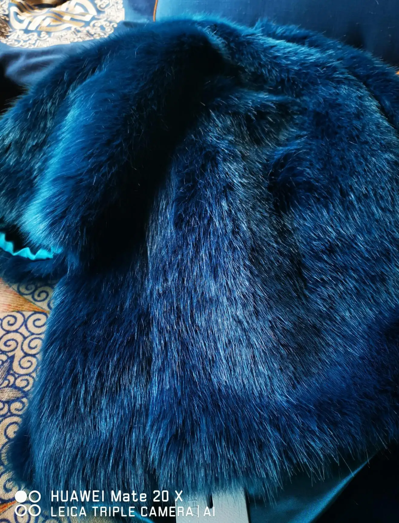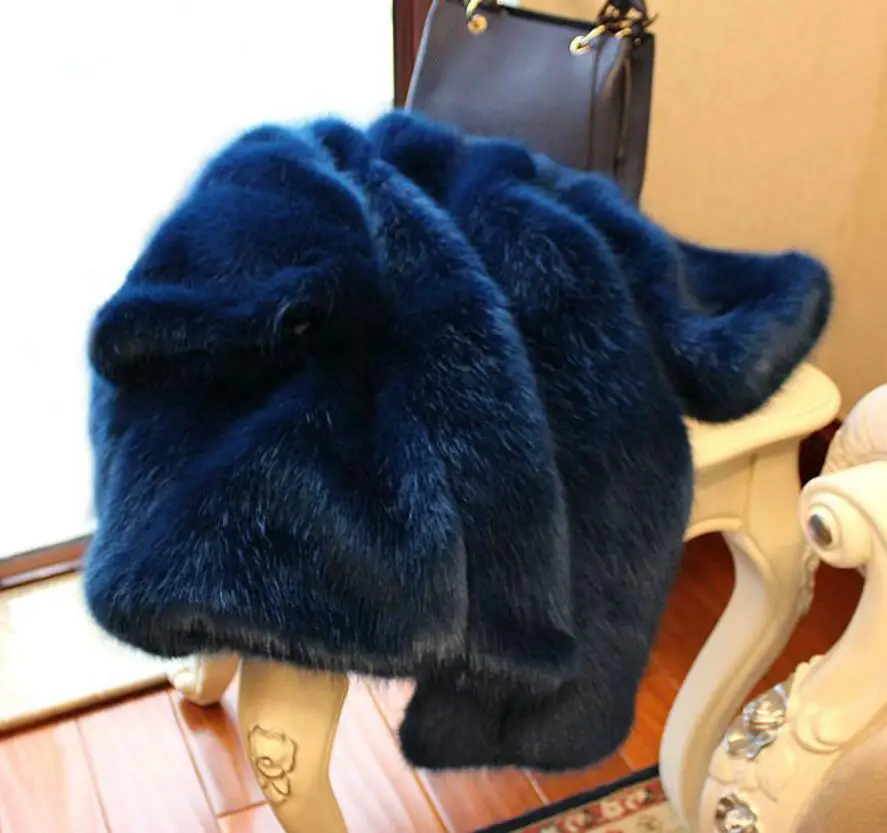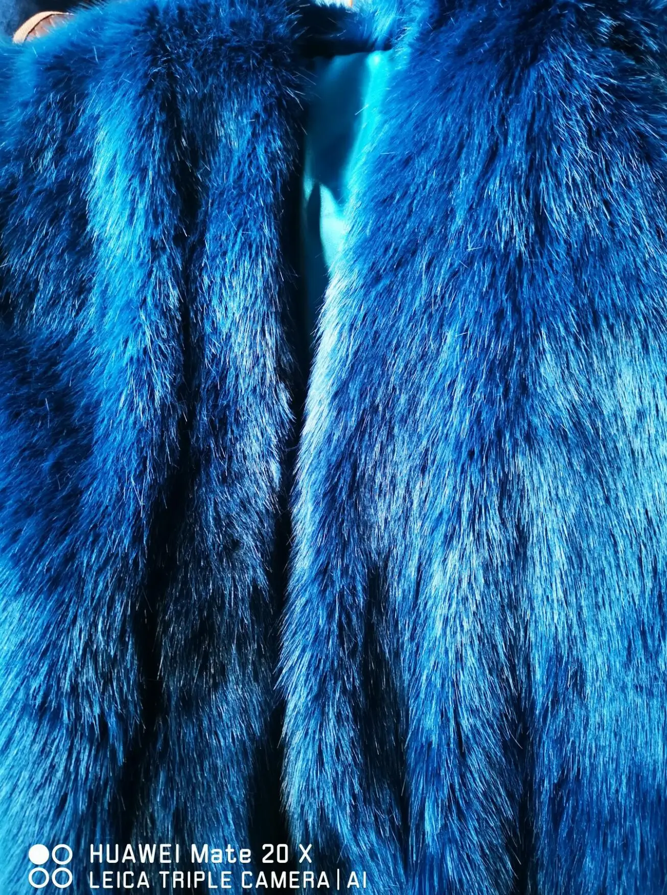 Высококачественное зимнее пушистое пальто из искусственного меха с V-образным вырезом, Длинная женская куртка из меха Королевского синего цвета с рукавом 34, свободная верхняя одежда