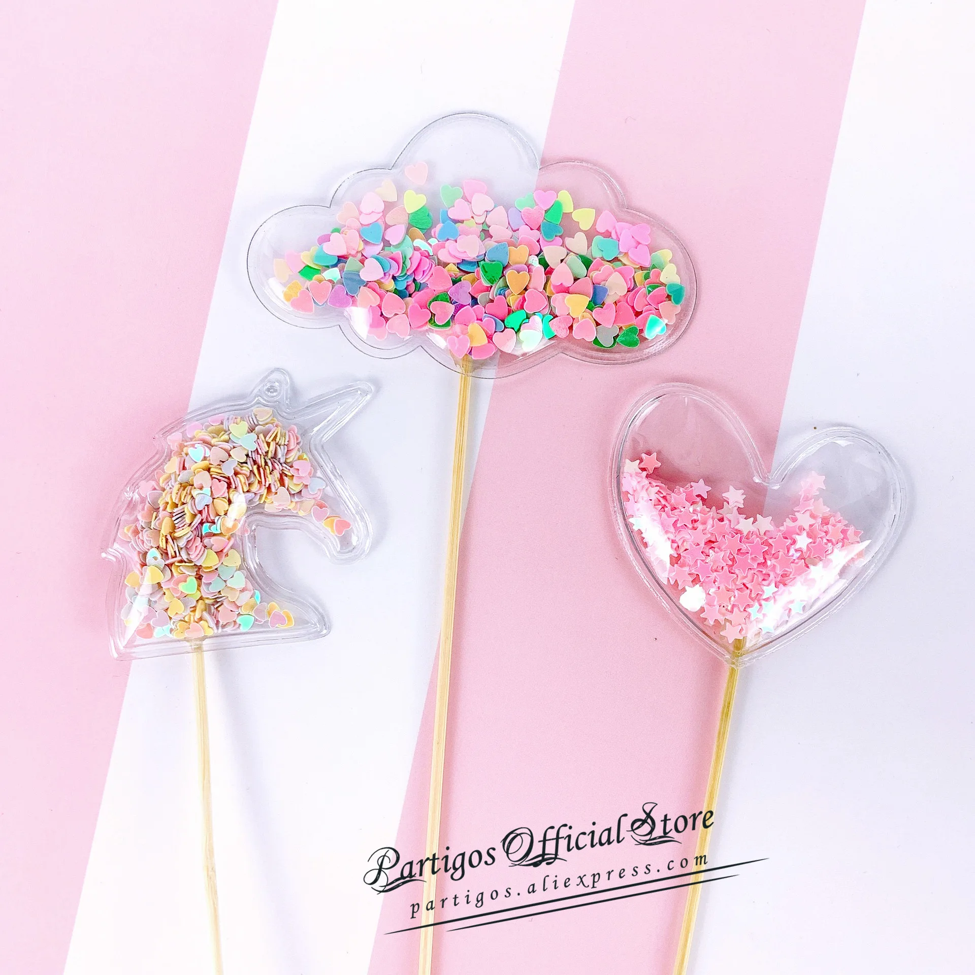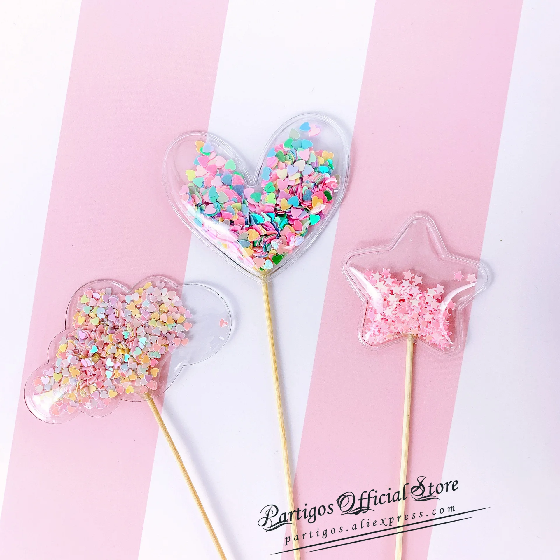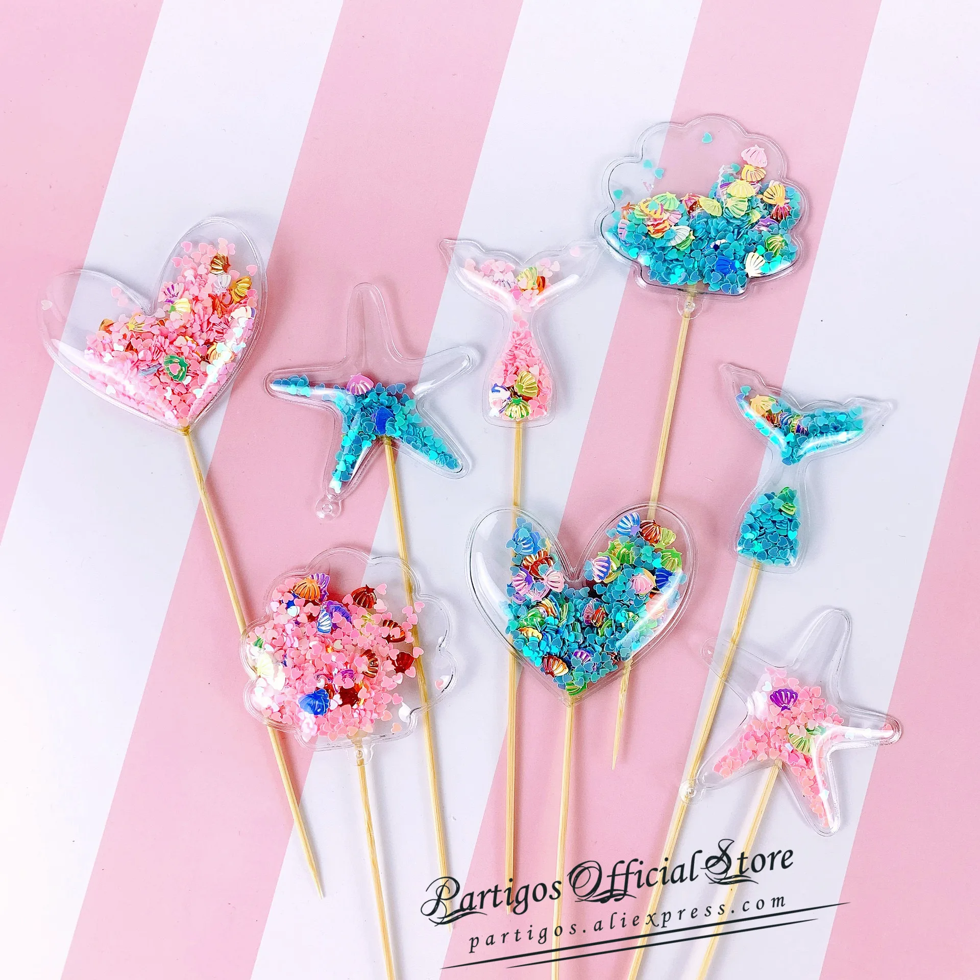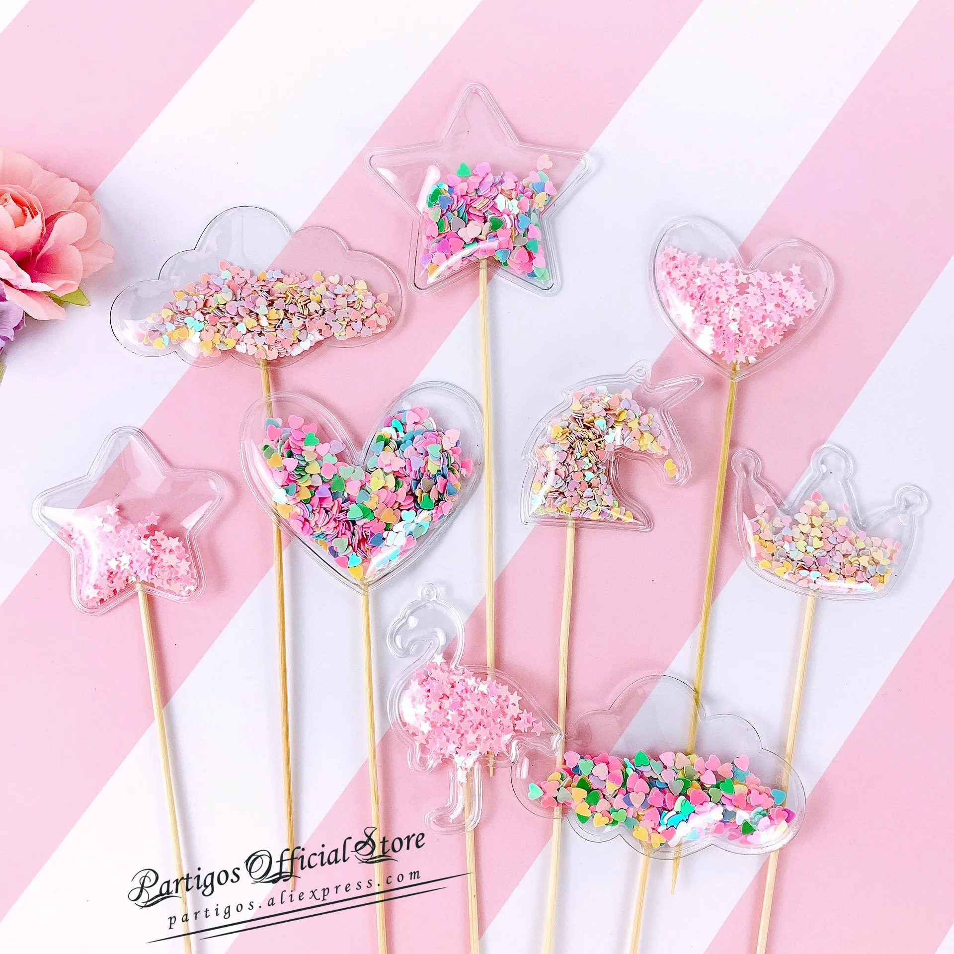 Красочные блестящие топперы для торта из ПВХ, звезда, сердце, корона, единорог, Русалка, декор для торта, свадьбы, дня рождения, пузырьковый Декор