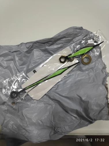 Сами стрелки очень хорошие. Выглядят неплохо, секундная хорошо сбалансирована. Светятся. Но не становятся на часы :)) - диаметр отверстий больше, чем надо. Пробовал с двумя разными механизмами. Может быть, есть несколько стандартов для таких механизмов - не знаю. А продаван ничего про это не написал. Пришли совсем чуть неровными. Для обычного пакетика даже без картонки внутри это чудо.
