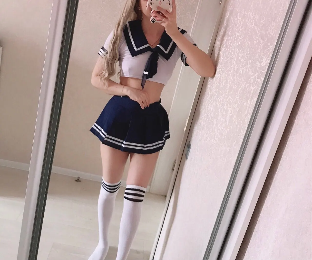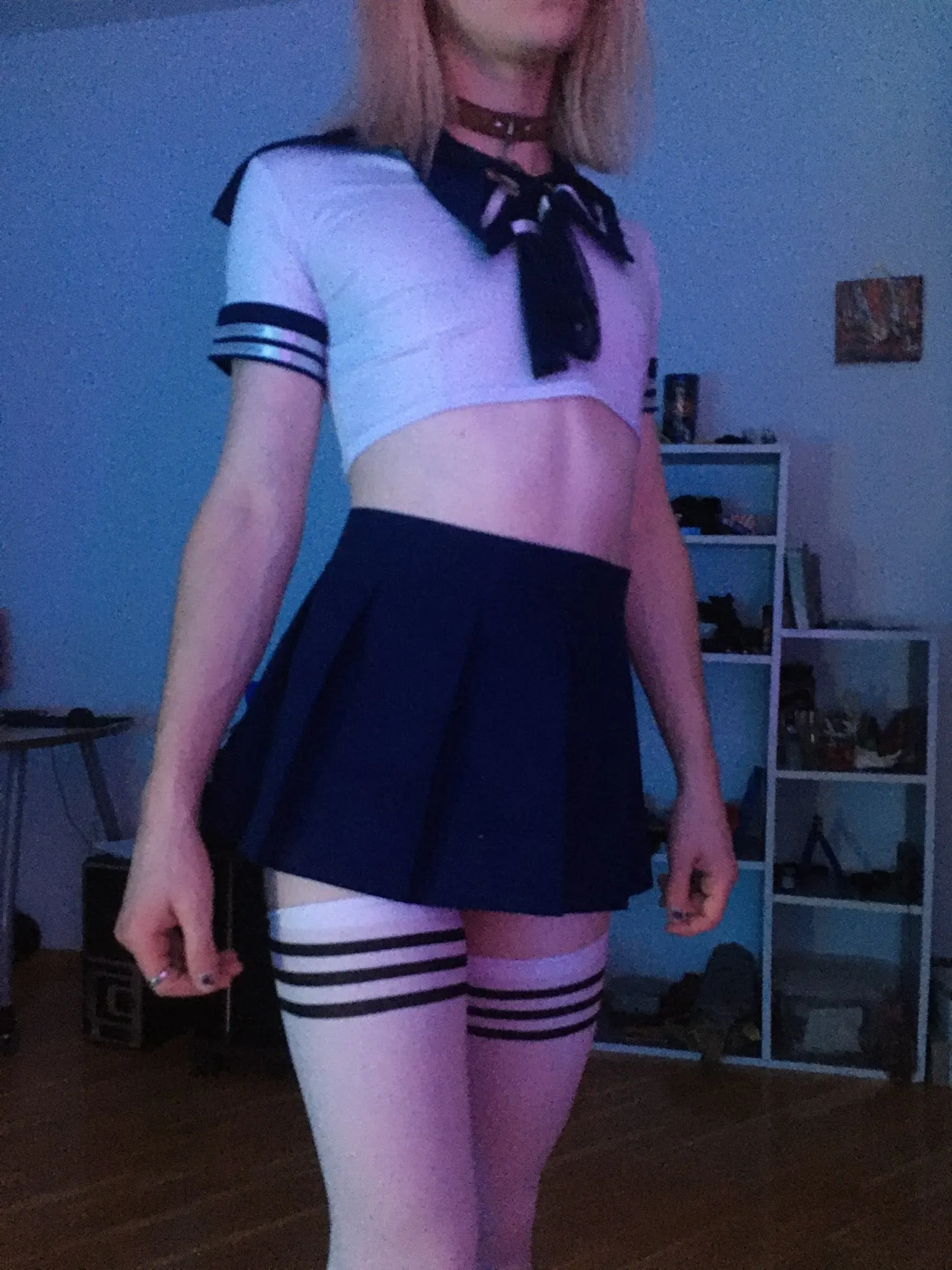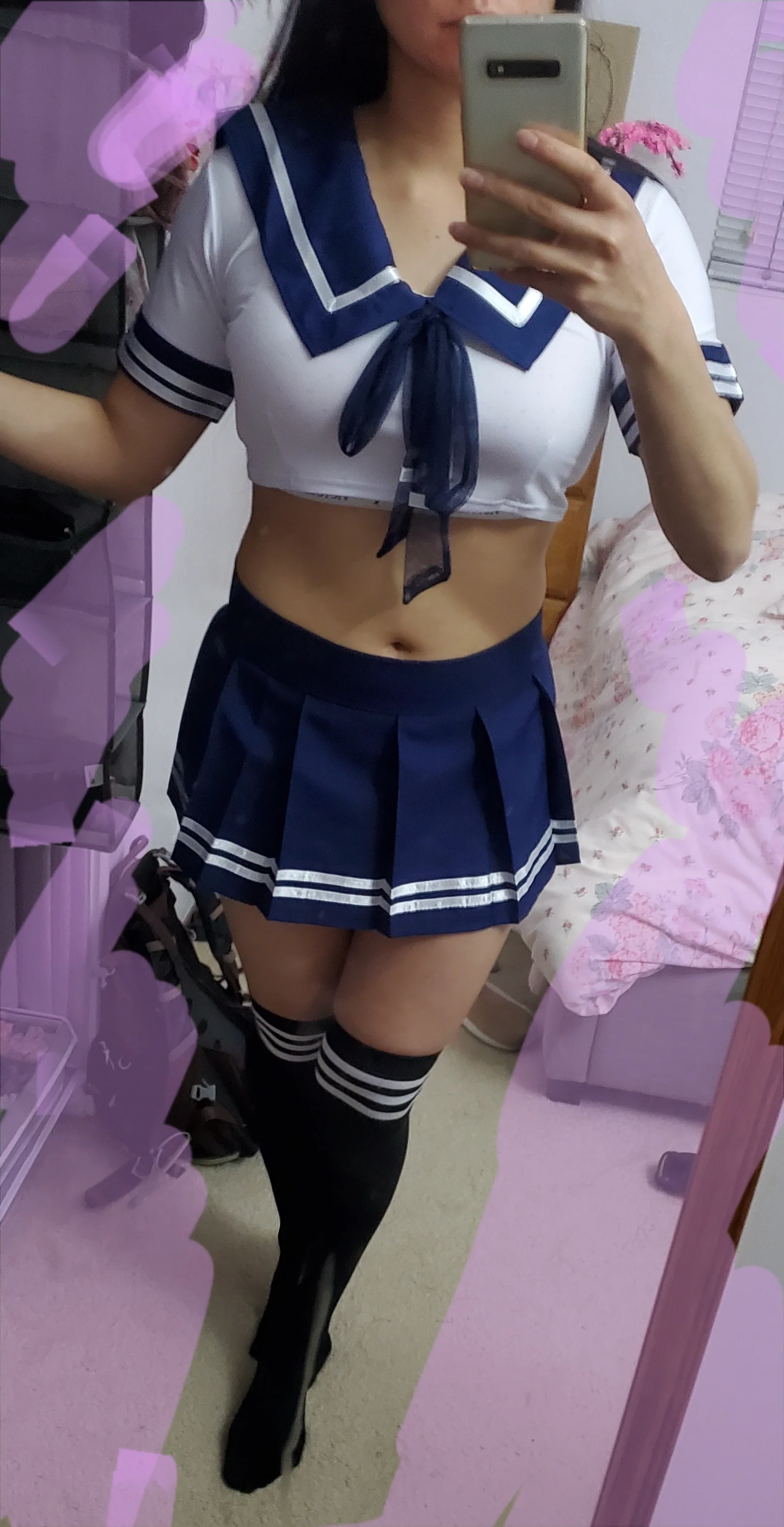 Это действительно мило и сексуально. Топ мягкий и удобный, почти как футболка. Юбка имеет застежку-липучку и может быть скорректирована, чтобы соответствовать вашей талии. Я купил чулки отдельно. Моя талия 28 дюймов для справки.