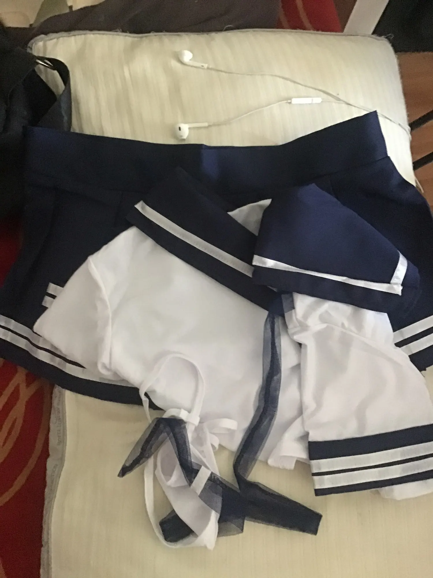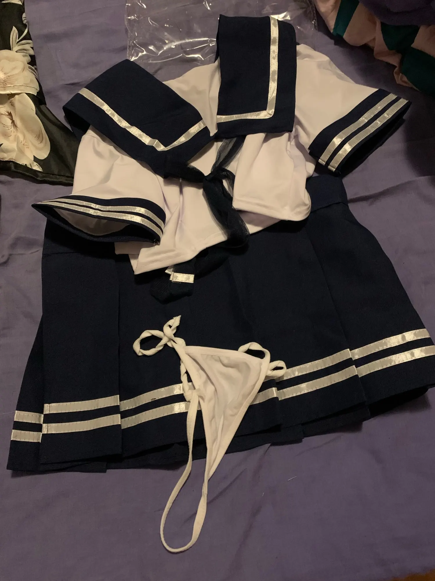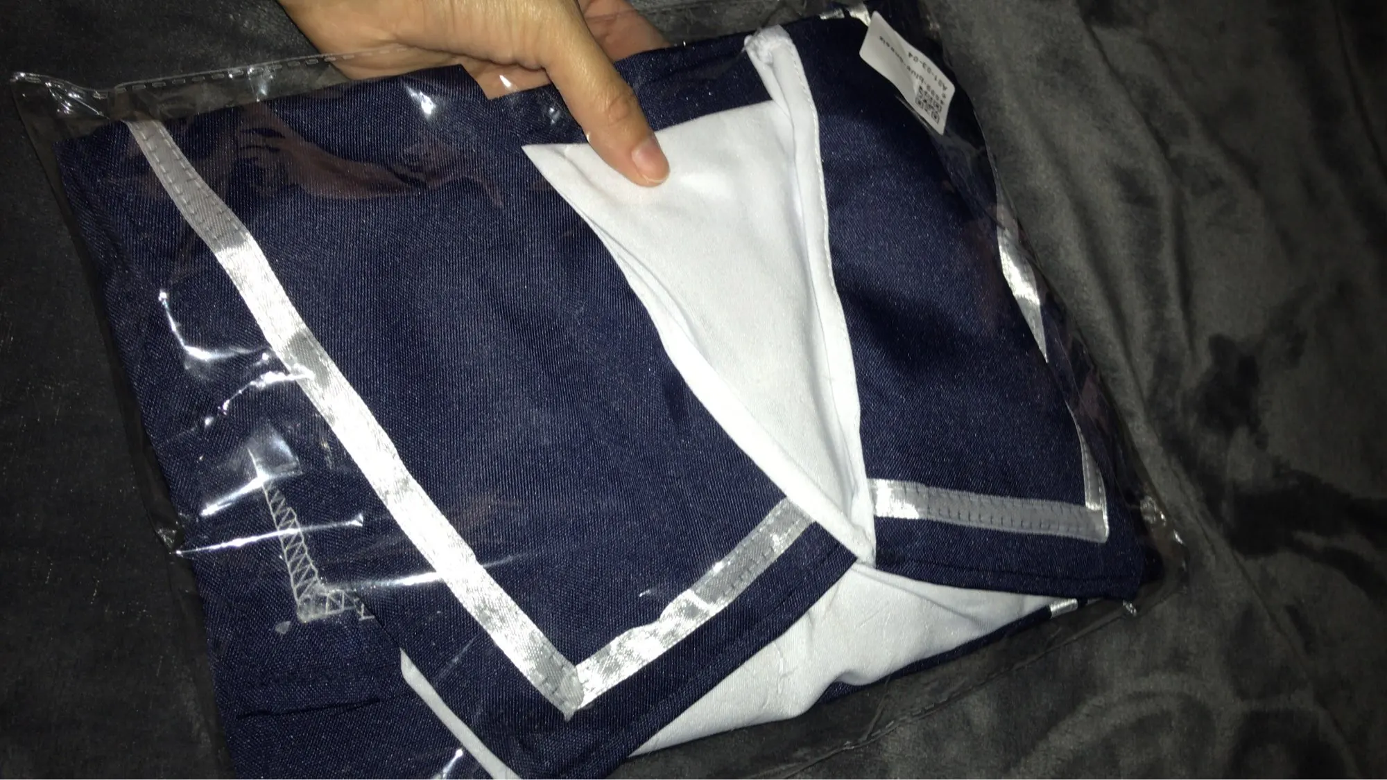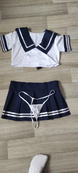 Товар прибыл в Беларусь всего лишь за 10 дней! Качество хорошее, посторонних запахов нет. Заказывала «one size» на рост 168 параметры 82-57-93. И майка, и юбка очень короткие. Юбка на липучке, если носить ее на талии, то она в этом месте большевата и попа видна. Бант на шее из сетчатой полупрозрачной ткани, думала будет х/б. В целом очень довольна.