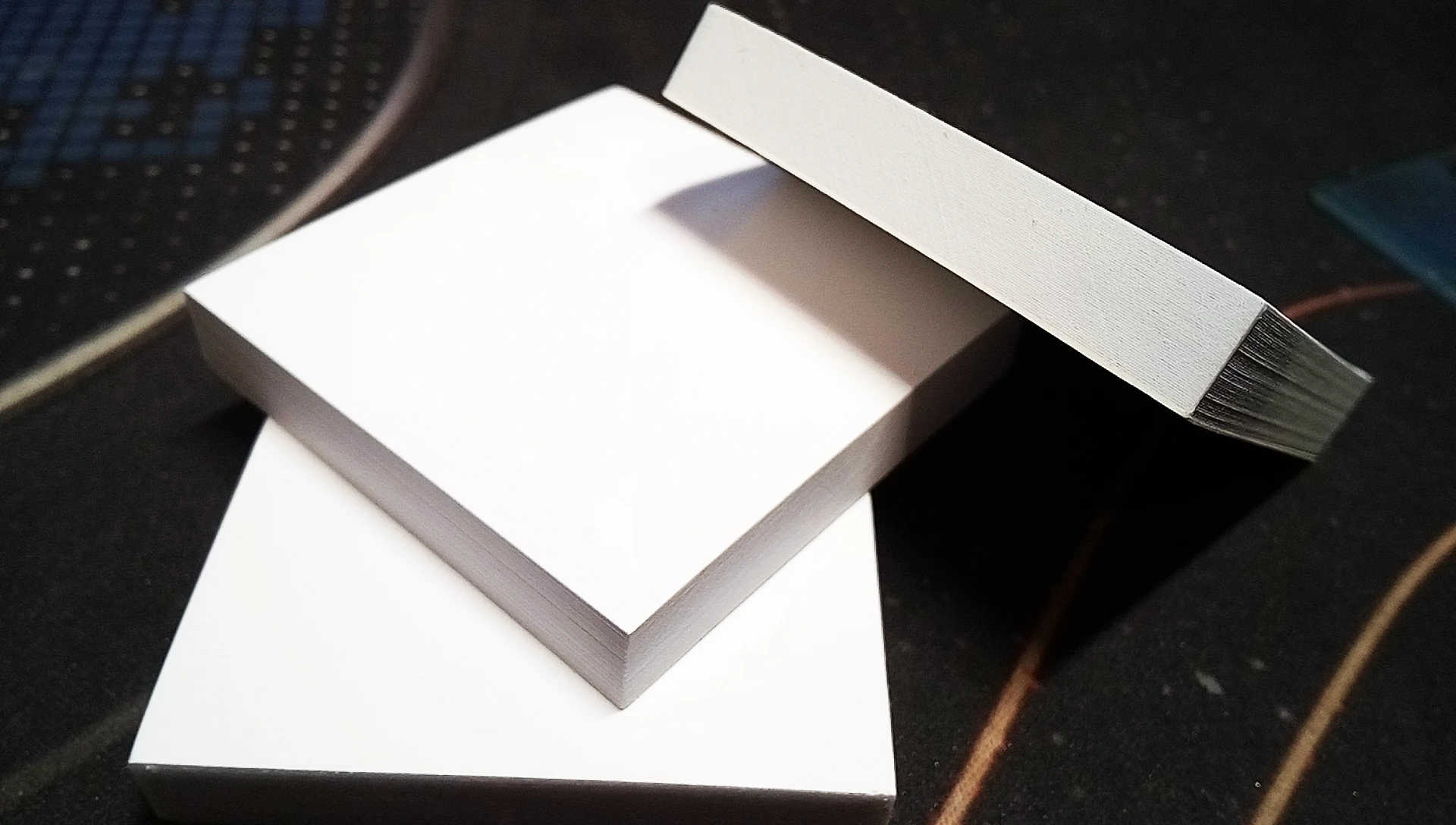 Ноутбук из тех, что поверхность блестящая и хорошо подходит для смешивания стеклянной сигареты. Они 4 см на 4 см.