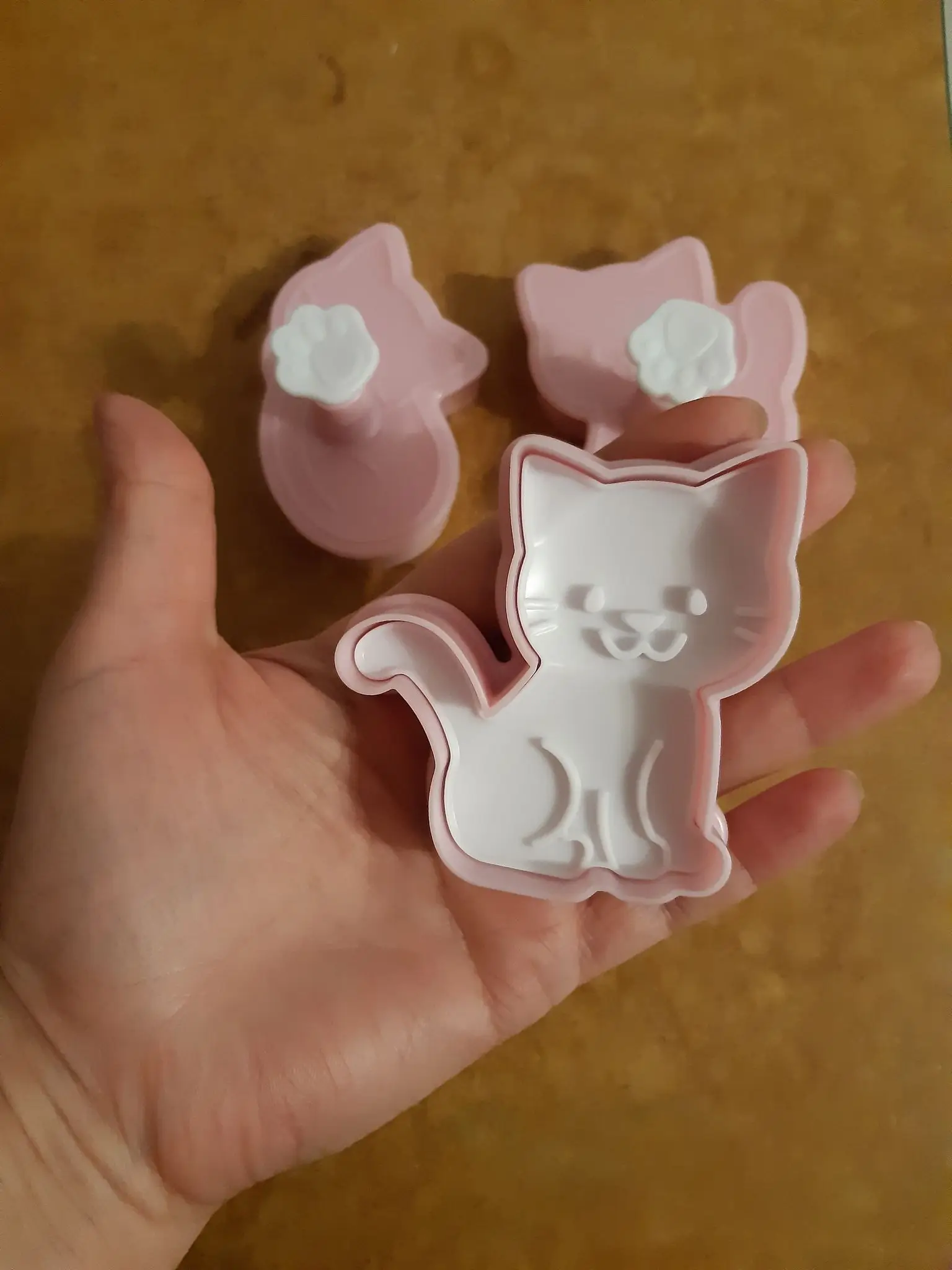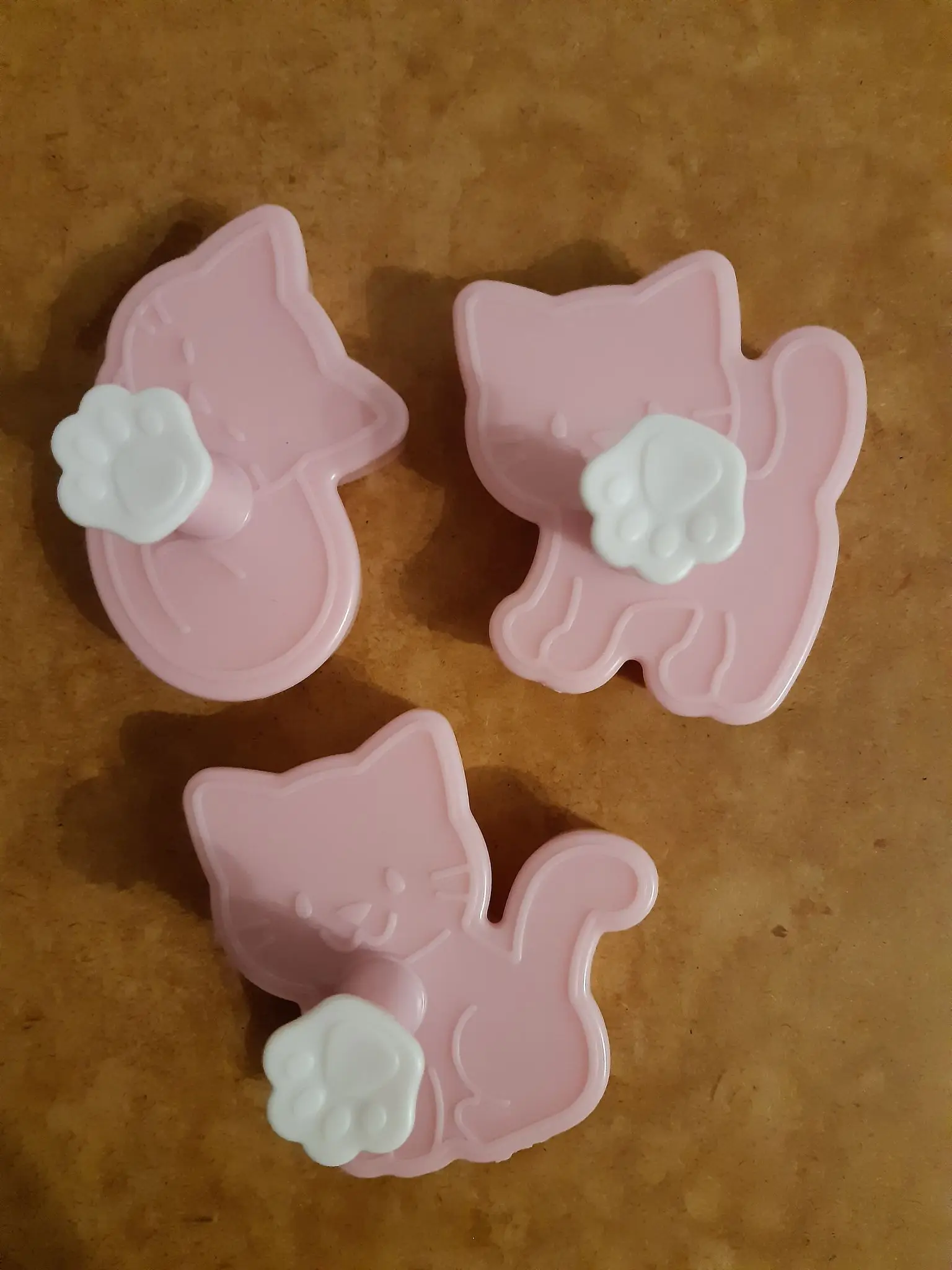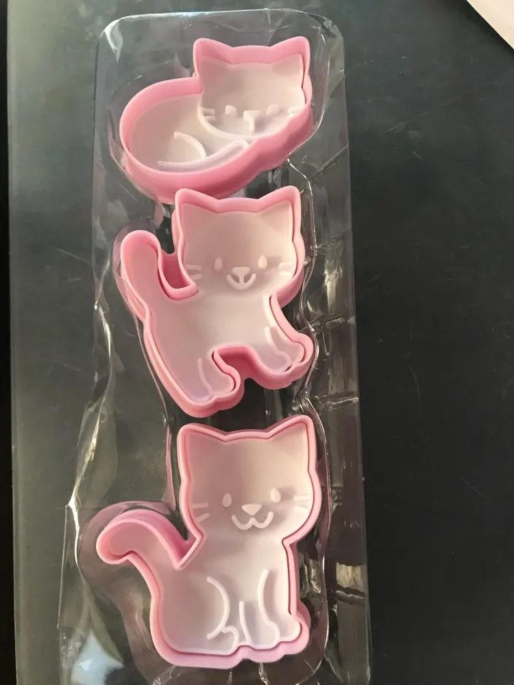 son grandes.muy bonitos para hacer galletas en forma de gato.me han gustado mucho.la masa puede sacarse fácil porque lleva un pulsador para que salga bien. muy contenta con la compra.han llegado antes de plazo.