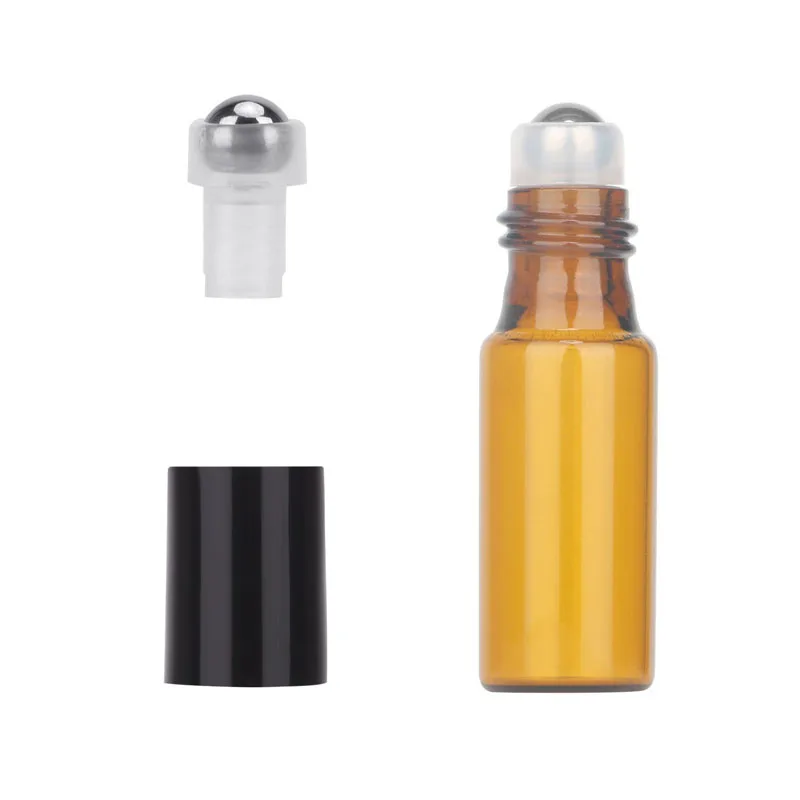 5 шт 5 мл янтарные стеклянные бутылки из нержавеющей стали роликовые шарики для эфирных масел Духи ролл на флаконах