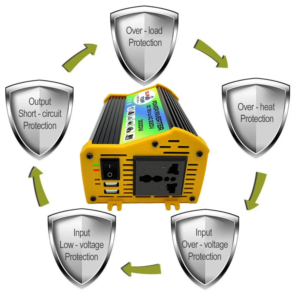 Автомобильный инвертор с 2 USB-портами, 3000 Вт, 12 В постоянного тока в 220 В переменного тока