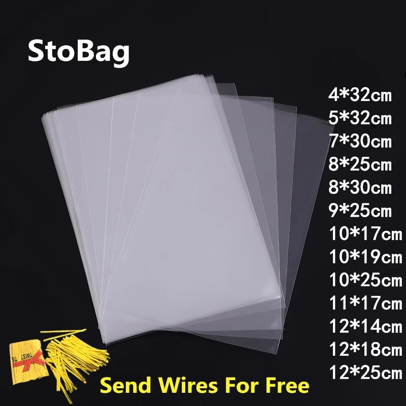 StoBag 200 шт., длинный прозрачный пластиковый пакет с открытым верхом, ОПП, пакет для конфет, печенья, подарков, плоский пакет для леденцов, хлебобулочных свадебных торжеств