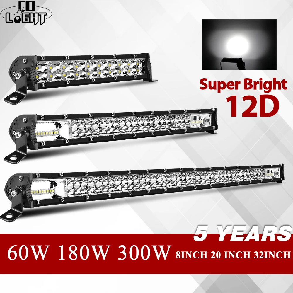 Тонсветодиодный Однорядная светодиодсветильник панель CO LIGHT, офисный Рабочий светильник, 8 дюймов, 20 дюймов, 32 дюйма, 12D, 60 Вт, 180 Вт, 300 Вт, светодиодный x 4, для кроссоверов, 4WD, квадроциклов, внедорожников, 12 В, 24 В