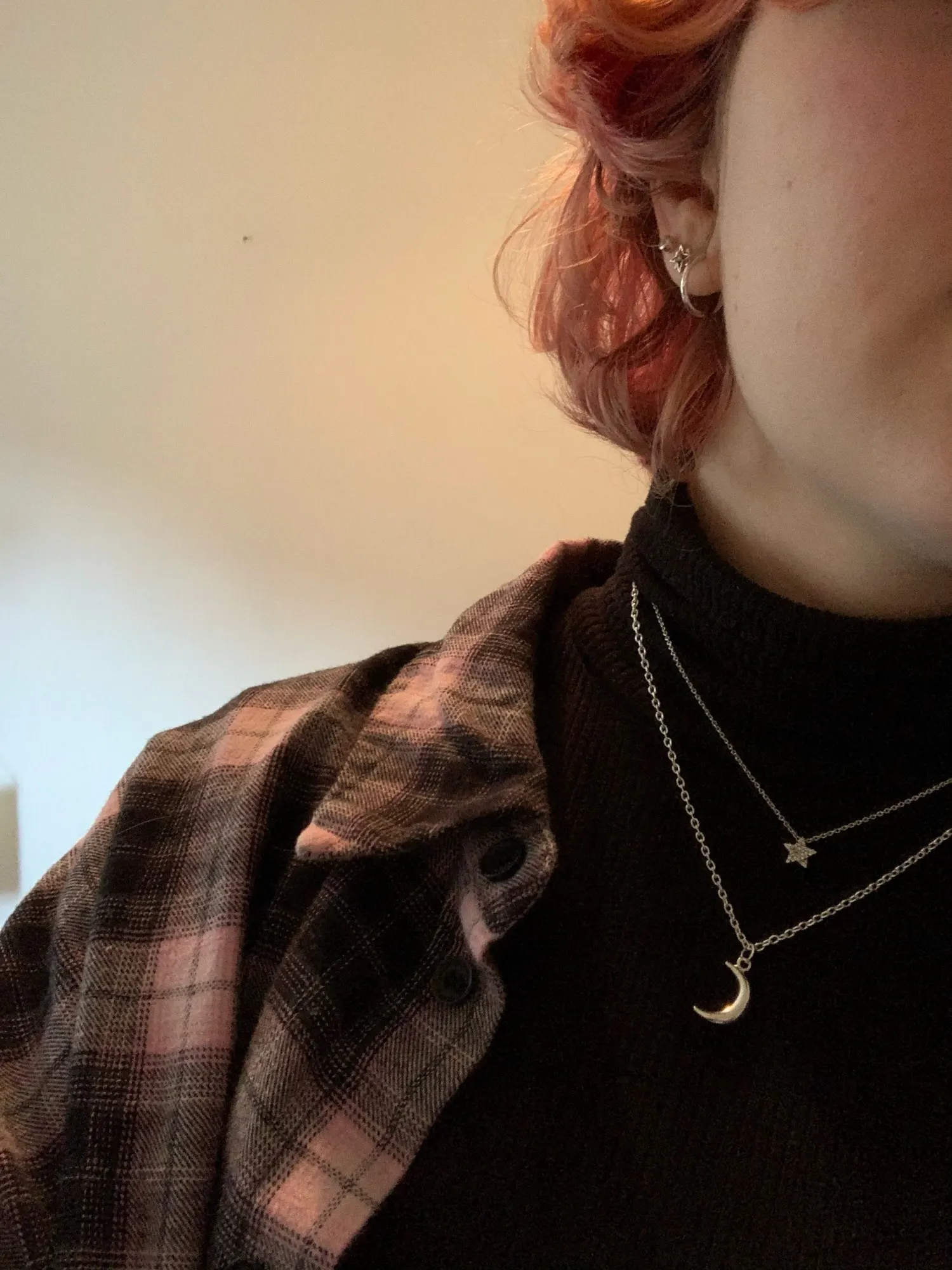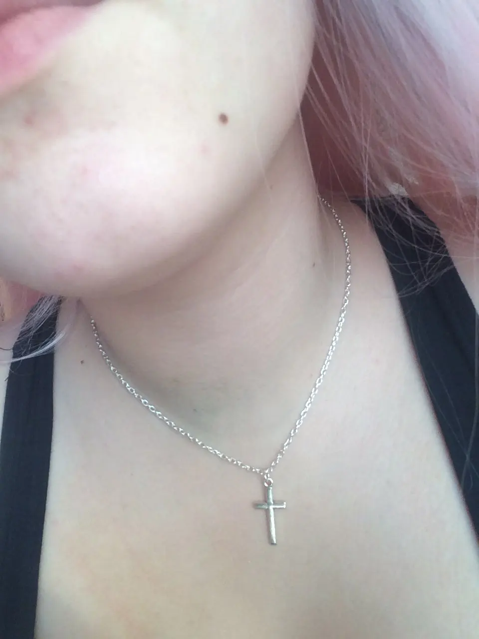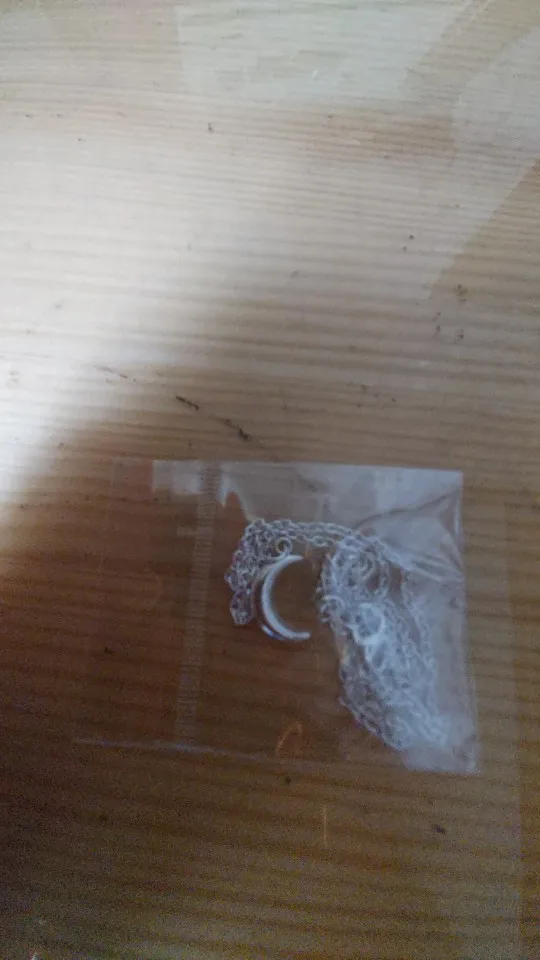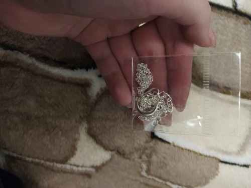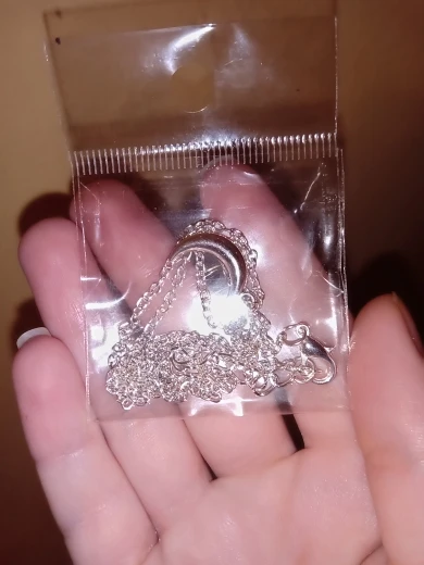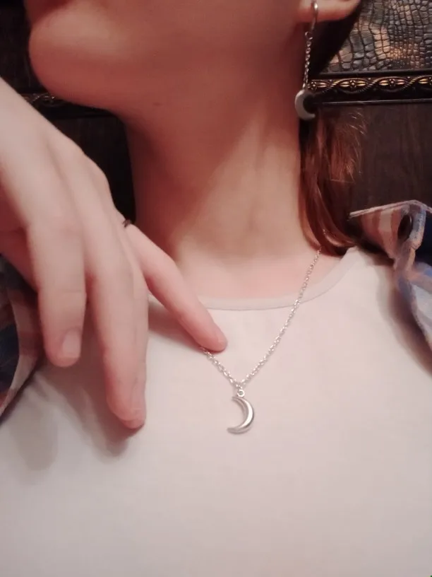 пришло относительно быстро. он здесь перевернулся (на фото), но всё равно видно. выглядит симпатично <3 но я бы наверное носила ещё с другими аксессуарами. цепь и правда светловата, не похоже на серебро, поэтому имейте в виду.