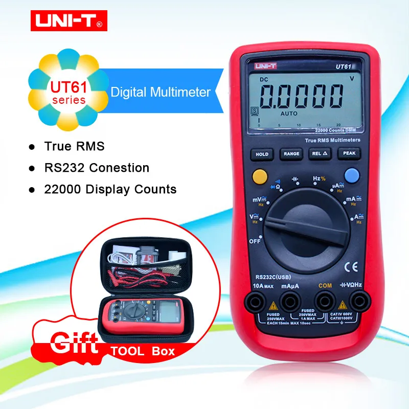 С коробкой EVA UNI-T UT61E Цифровой мультиметр True rms Авто Диапазон UT61A/B/C/D AC DC измеритель удержания данных многометровый