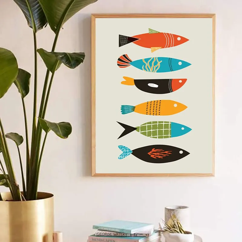 Современный холст с принтом рыбы, постер, настенный художественный декор, искусство рыбы середины века, картина для дома, украшение на стену