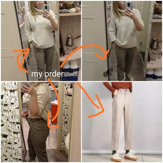 Брюки не соответствуют описанию. Цвет брюк другой. я получила брюки темно серые с небольшим коричневым оттенком. Брюки размер Л сели на бедра 90 см! а на талию размером 68 см очень большие! Мой рост маленький 162 см, эти брюки мне очень короткие. Приседая, наклоняясь, поднимая ногу, брючина доходит до середины икры! Очень короткие даже для меня. На фото они не короткие, да и размер не выбрать у продавца в харакристеке, указан другой товар((