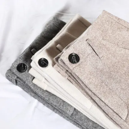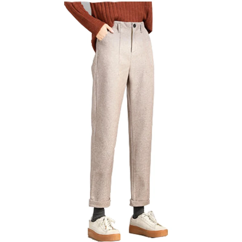 Брюки женские шерстяные бежевые, с высокой талией, до щиколотки, прямые, шаровары, Осень-зима 2020