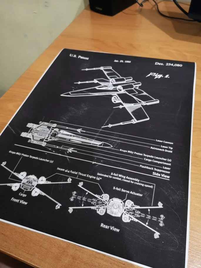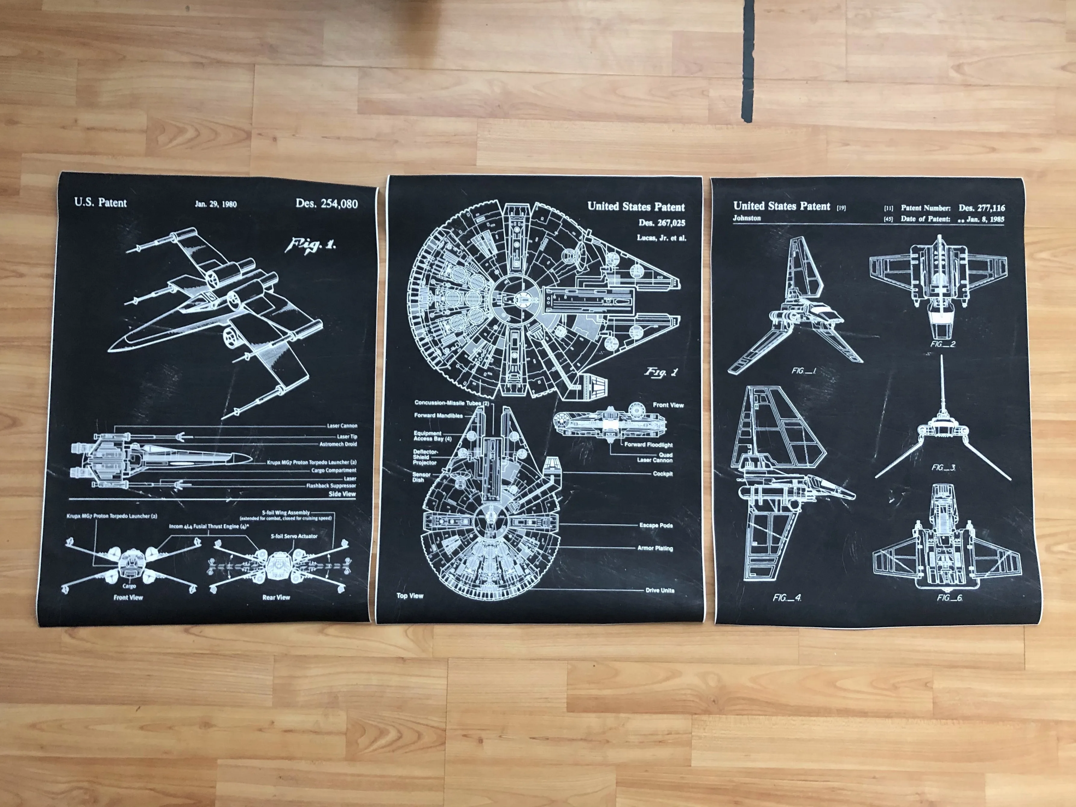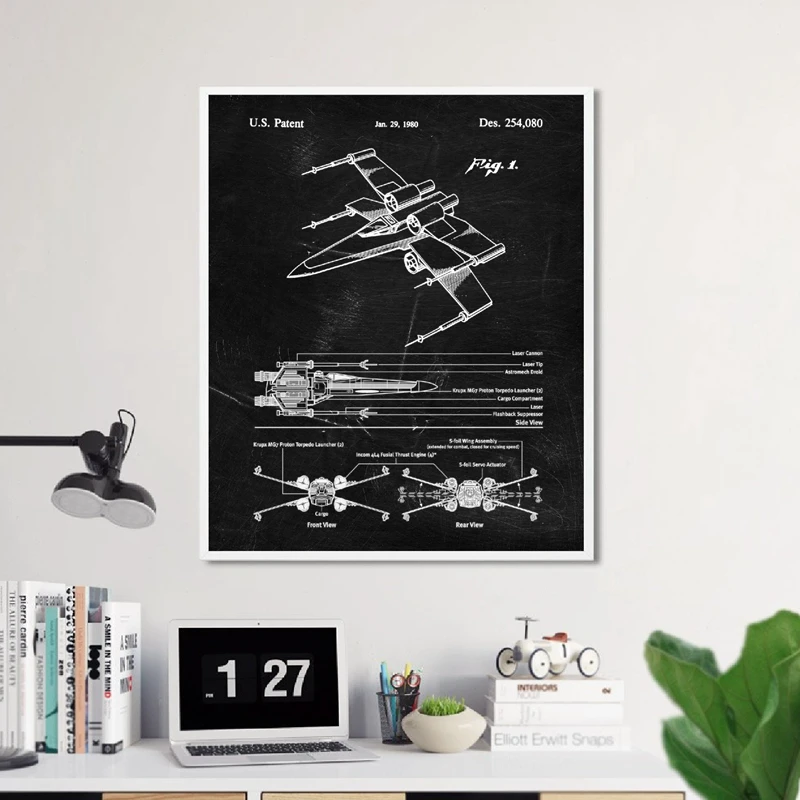 X Wing патент чертеж Холст принты Мальчики декор комнаты научная фантастика Любители подарок плакат искусство картина в стиле стимпанк украшения