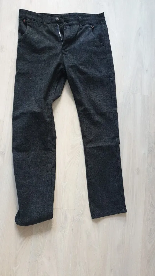 Качество ткани хорошее, пошив плохой, нитки везде - и снаружи и внутри. Лекала плохие, в бедрах размер мой, а в поясе на размер-полтора больше. Одел ремень - всё лишнее пришло в складки к гульфику, к молнии, смотрится плохо.