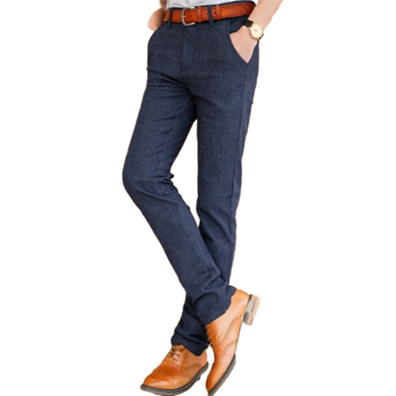 Новинка 2020, Мужские штаны, тонкие повседневные штаны, полная длина, модные, деловые, Стрейчевые брюки, мужские Брендовые брюки, черные, синие, Pantalones