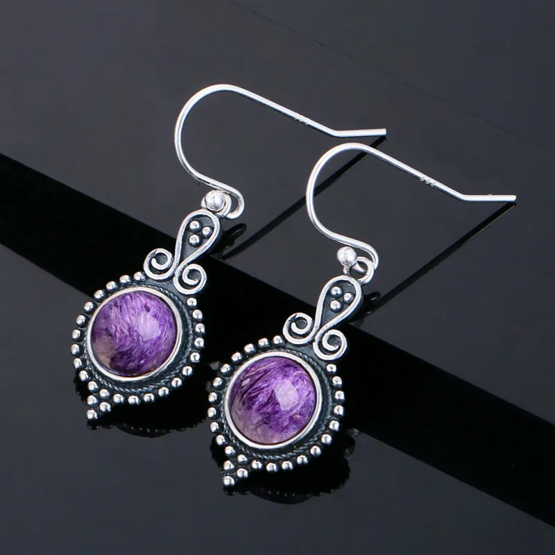 Женские серьги-подвески из серебра 925 пробы с искусственным камнем