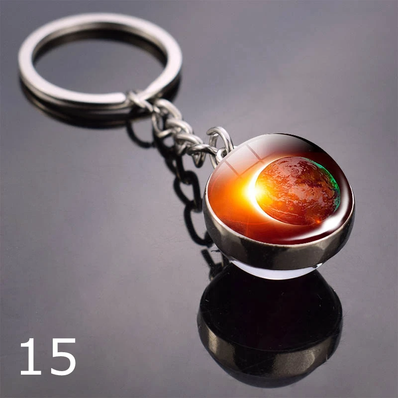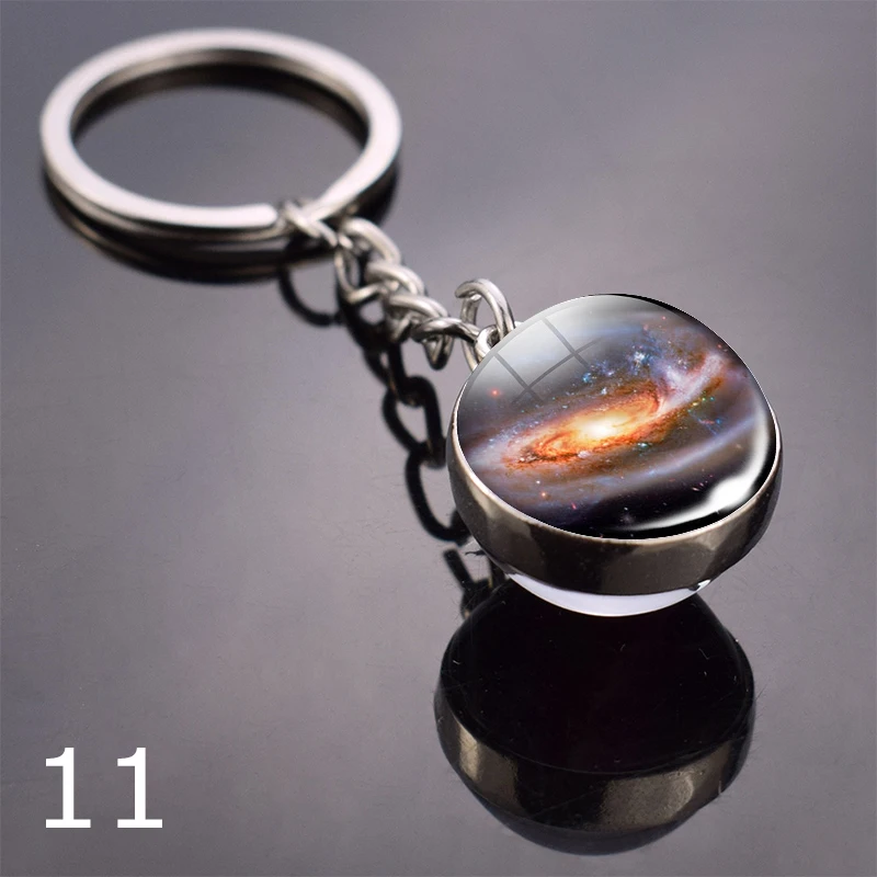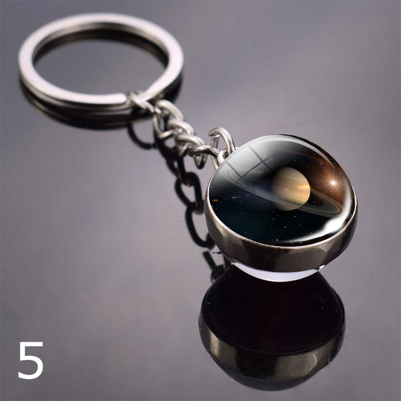 Брелок для ключей с планетами, двухсторонний брелок с солнечной системой, луной, землей, солнцем, стеклянным шариком, космосом, Галактикой, Туманностью