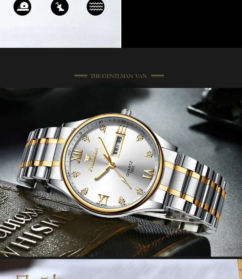 Мужские часы 2019 бренд FNGEEN, модные роскошные деловые кварцевые часы с отображением даты и недели, мужские часы Hodinky, мужские часы, часы с бриллиантами