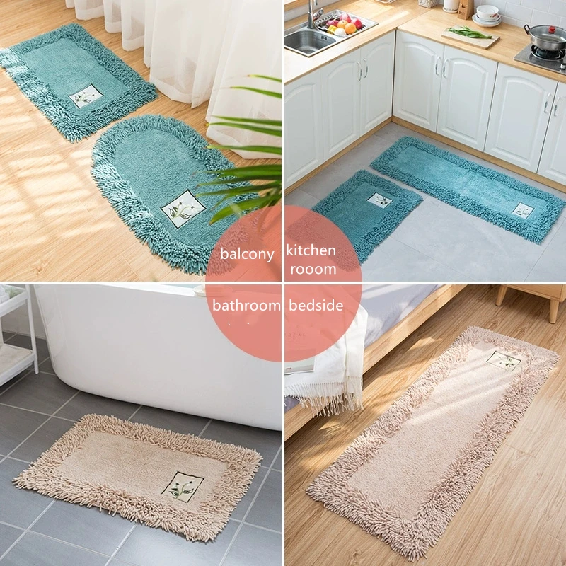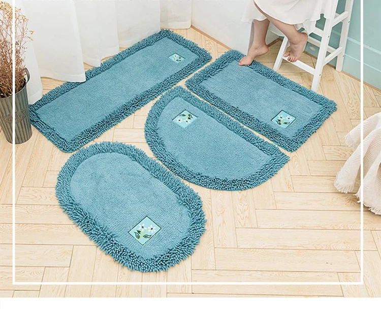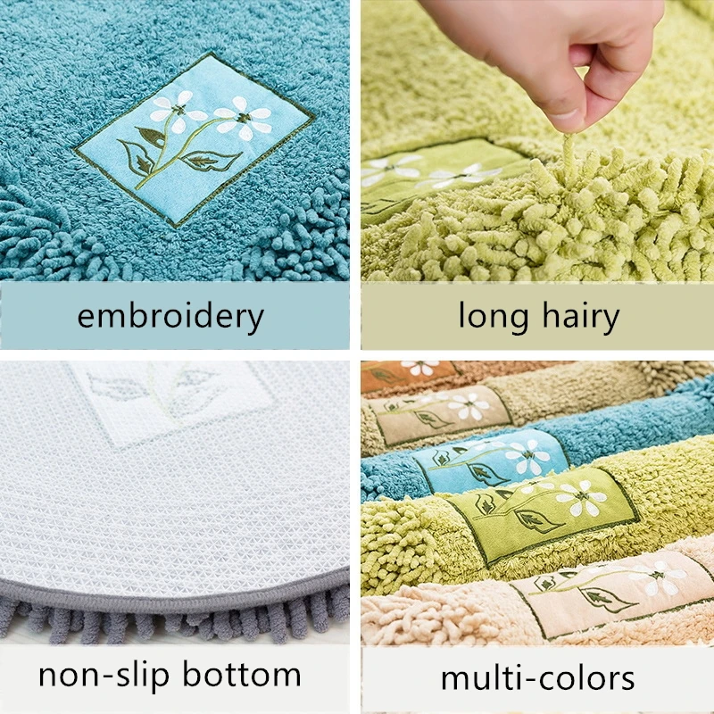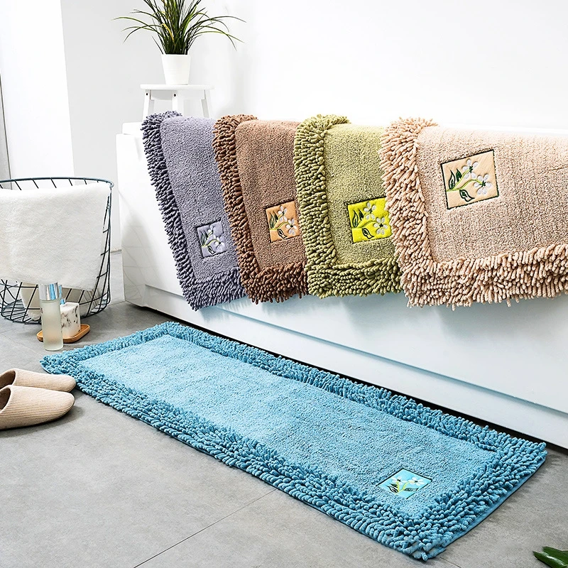 Полиэстер синель Ванная комната ковры коврики с вышитыми цветами коврик для ванной на нескользящей подошве туалет ванна сбоку Ванная комната пол ковер подошва из TPR