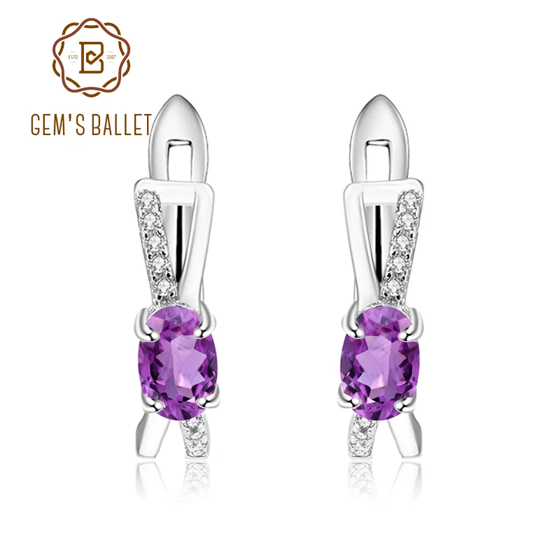 Женские серьги-Клипсы из стерлингового серебра 925 пробы, натуральный аметистовый драгоченный Камень карат
