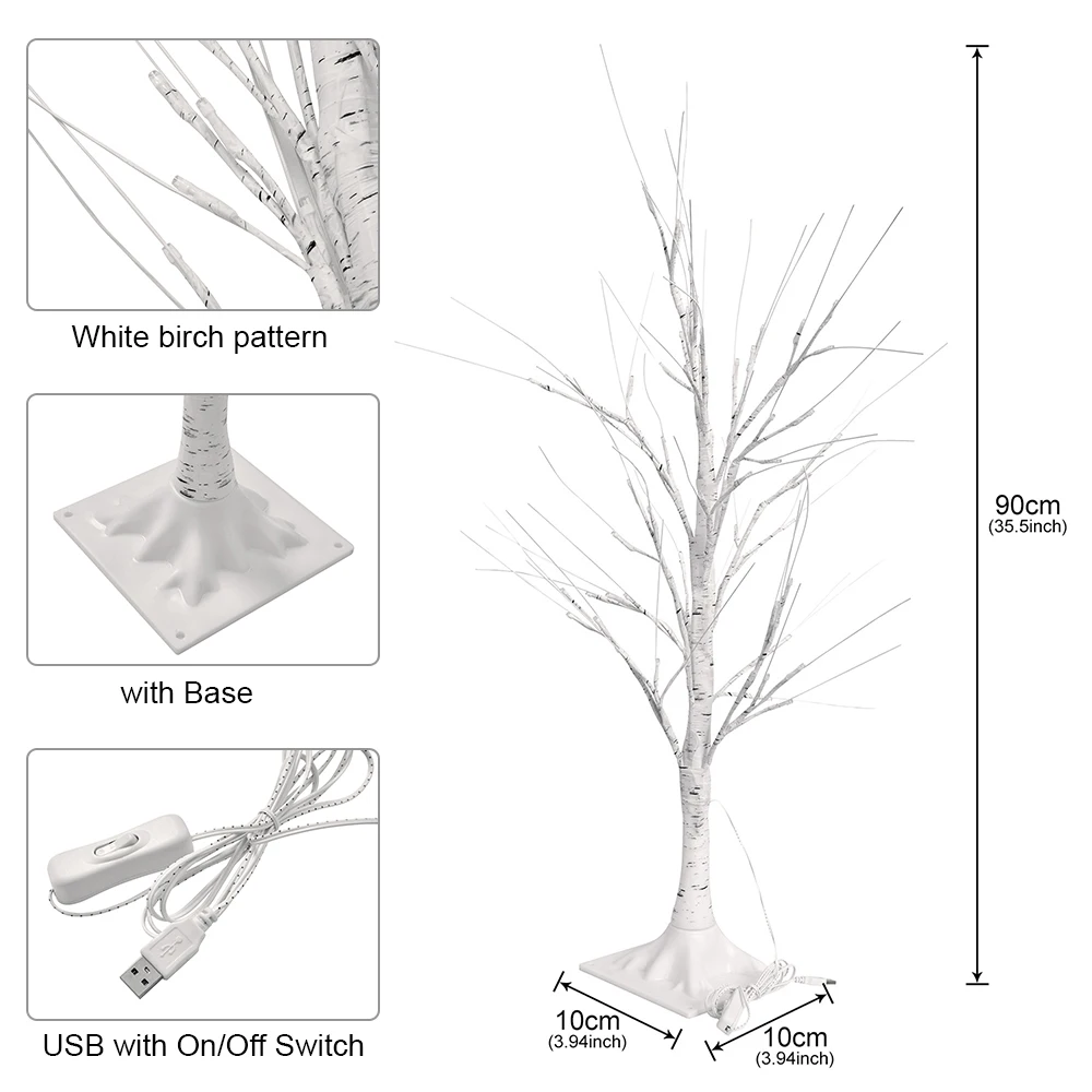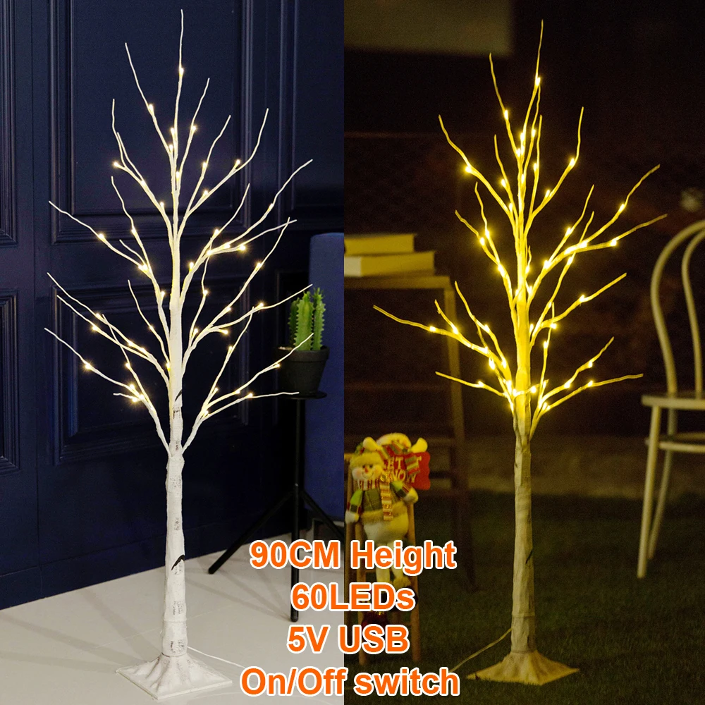 Светодиодный светильник в виде березовой елки, высота 90 см, 60 светодиодов, USB, с переключателем, светодиодный ландшафтный светильник, Декор для дома вечерние НКИ, свадьбы, Рождества, D30