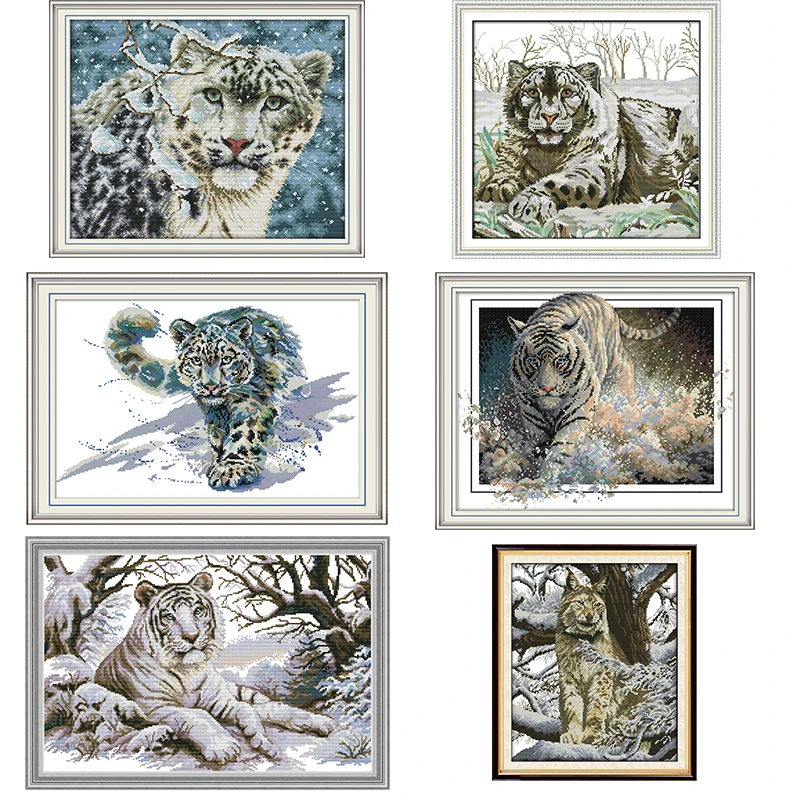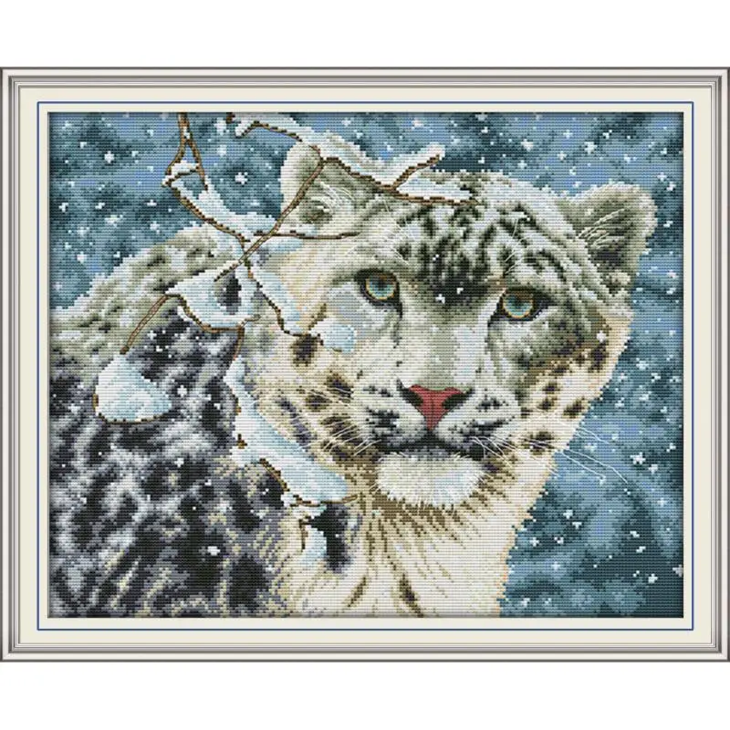 Комплект для вышивки с изображением животных Joy Sunday, вышивка крестиком с изображением тигра в снежном леопарде, 11CT 14CT, картина для украшения дома