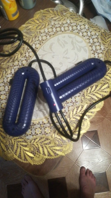 Это интересный продукт, как и зимой, если обувь стирается или моется, она стоит много, чтобы высохнуть выше всего внутри. Сушилка из жесткого пластика и очень легкая, она имеет сопротивление внутри и имеет три режима питания. Это занимает немного времени, чтобы поймать температуру и самое высокое тепло, но не загорается. Я еще не примерил его на тапочке, но думаю, что все будет хорошо. Размер подходит для тапочек многих размеров, меньше для детей. Я быстро и хорошо упакован.
