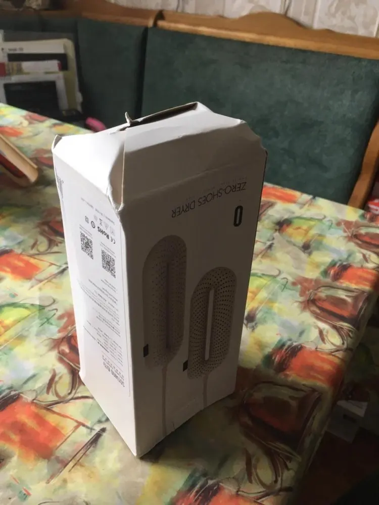 Посылка быстро прибыла в пункт выдачи. По всему пути отслеживалась. Упаковано очень хорошо, но коробка была помята по всей видимости еще до перевозки и пришла открытой. Сама сушилка в порядке. Вилка сразу евро, никаких переходников не нужно. Работает, нагревается средне, ставили таймер на 3 часа, отключился вовремя, на сушку взрослых кроссовок, постиранных в стиральной машине, трёх часов мало.