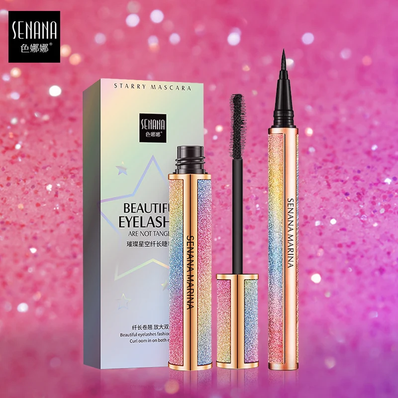 SENANA 4D Звездное шелковое волокно ресницы Толстая Удлиняющая Тушь для ресниц + подводка для глаз водостойкая стойкая быстросохнущая Косметика набор