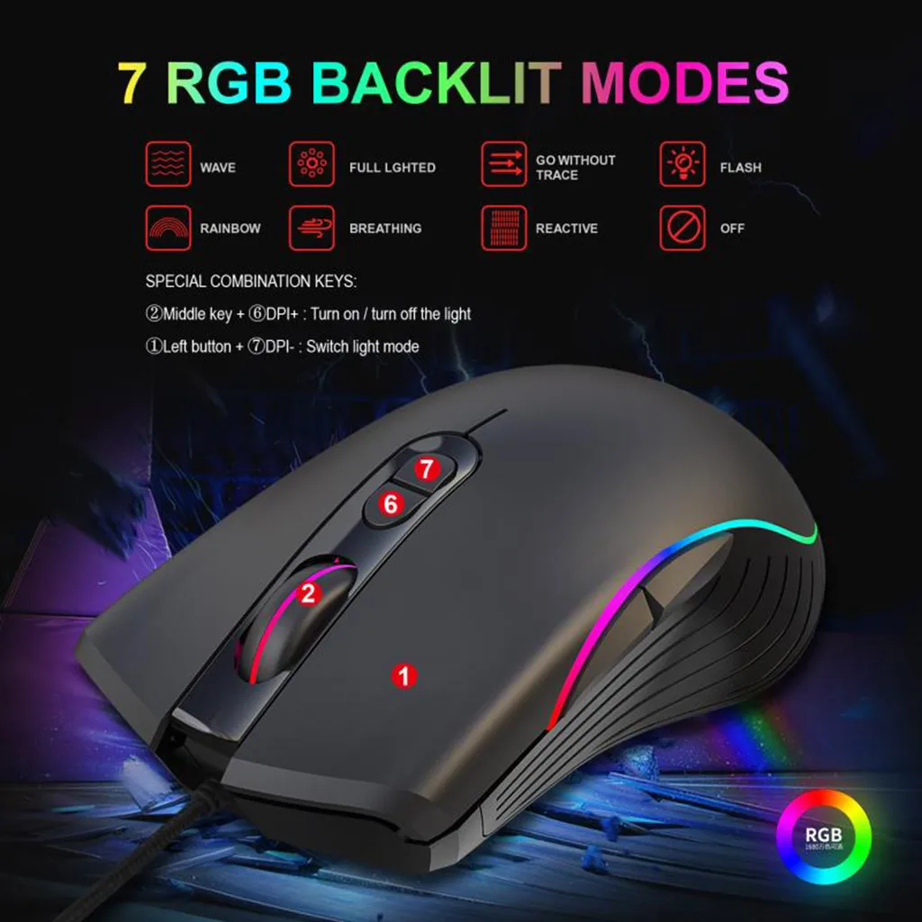 A867 игровая мышь 7 кнопок 6400 точекдюйм оптическая USB Проводная настольная мышь RGB компьютерная мышь с подсветкой для ПК компьютера ноутбука геймеров M0XE