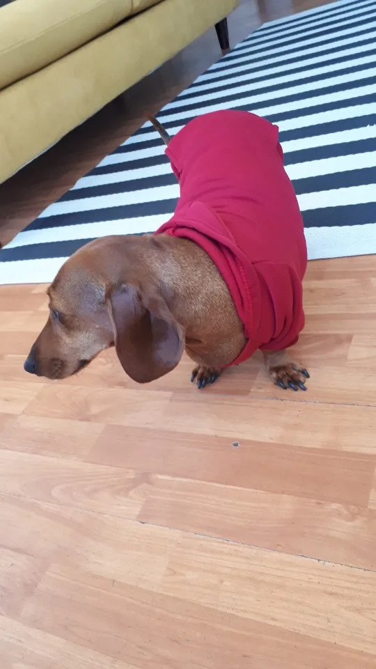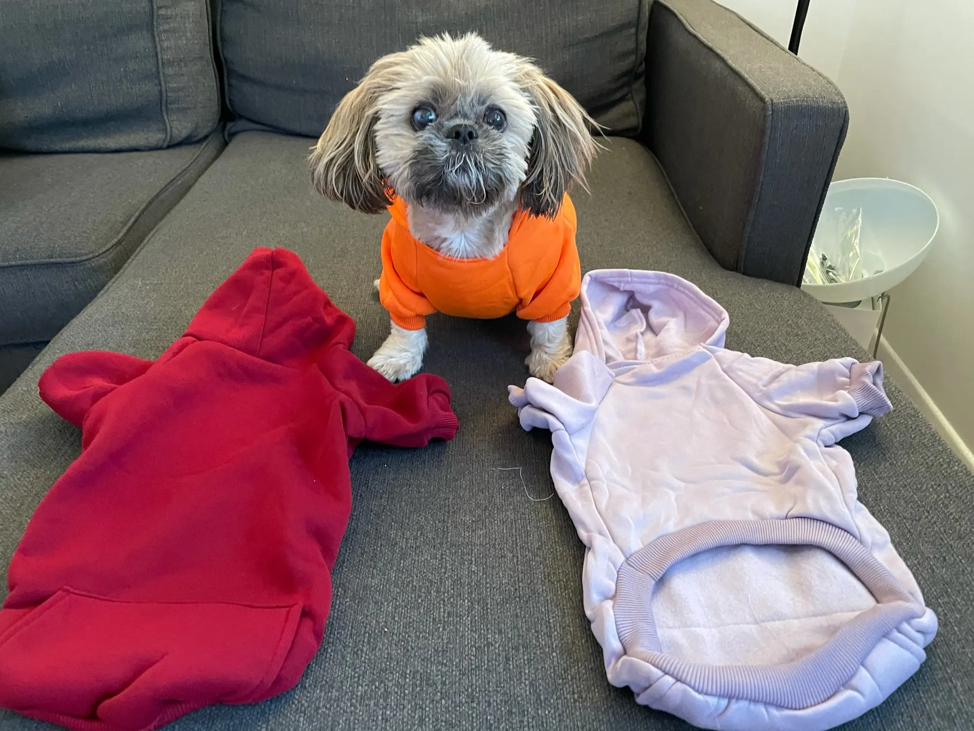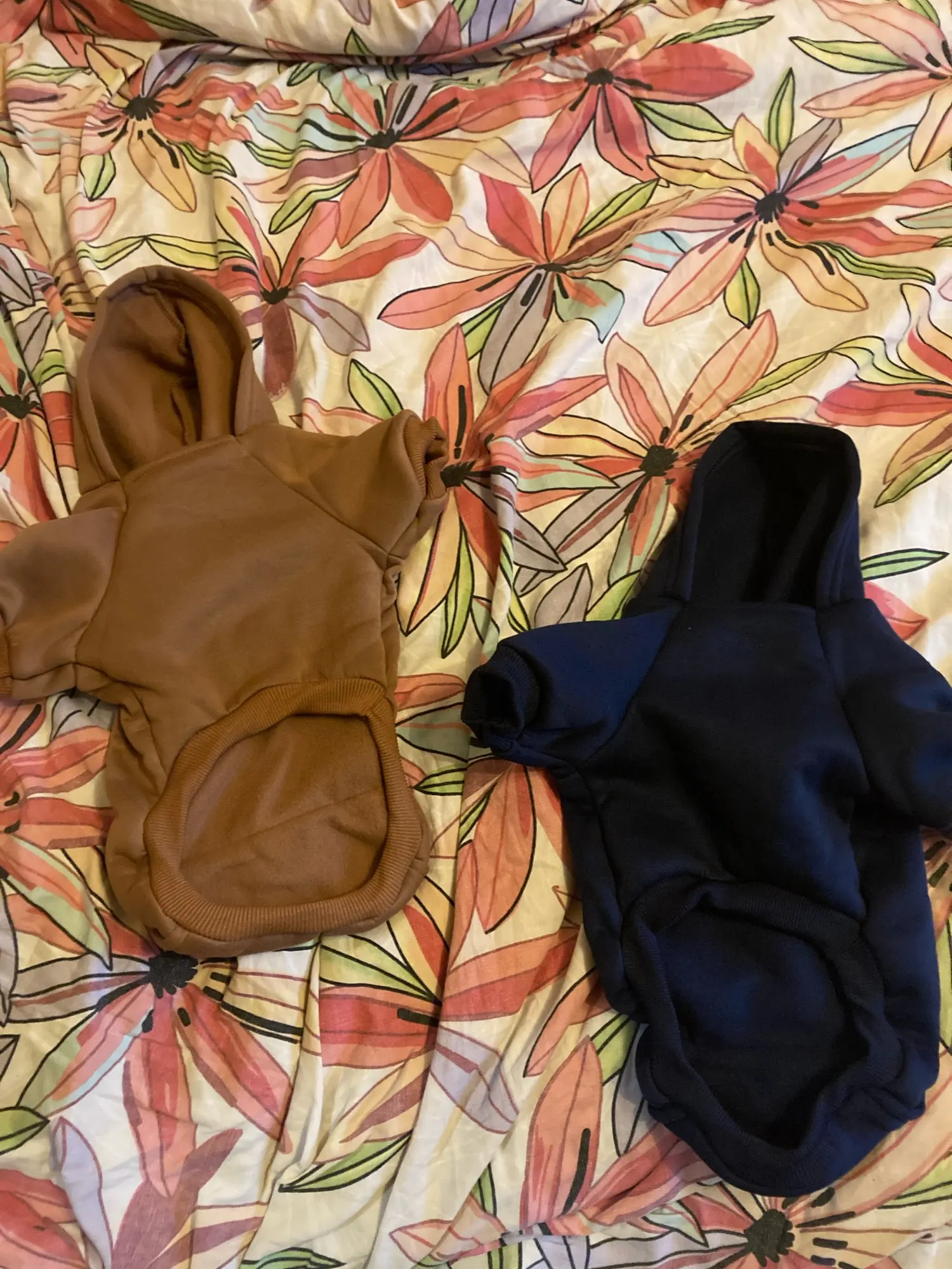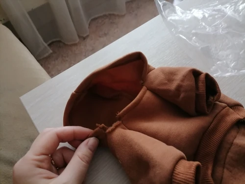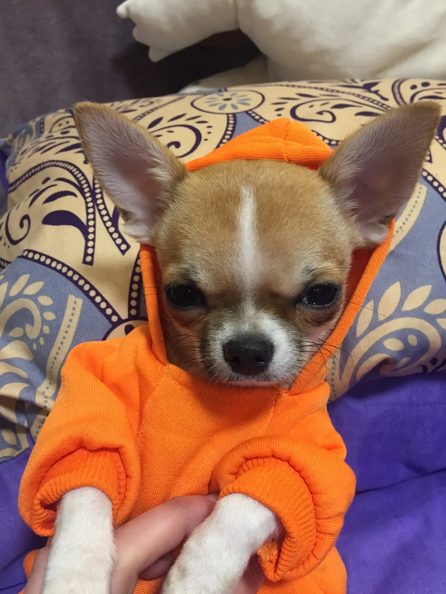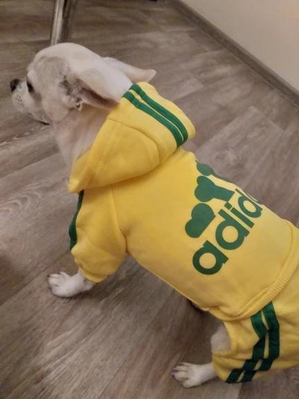 Посылочка пришла быстро. Толстовка из плотной, качественной ткани, цвет как и хотела тёмно синий. Брала размер М на чихуахуа стандартного размера, села отлично. Спасибо продавцу за качественный товар.