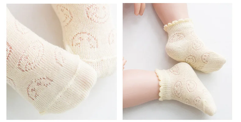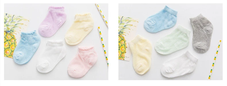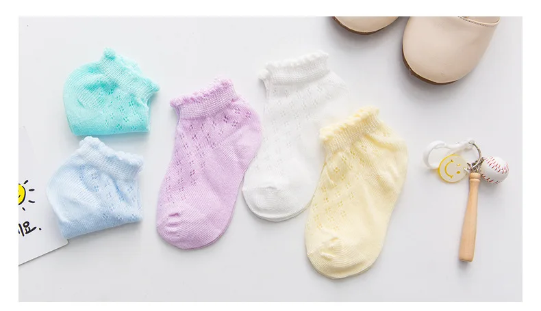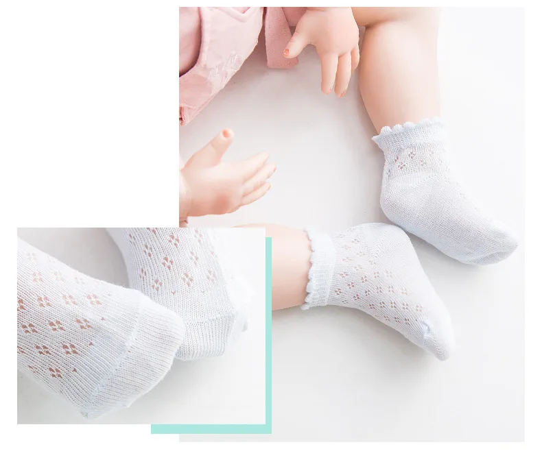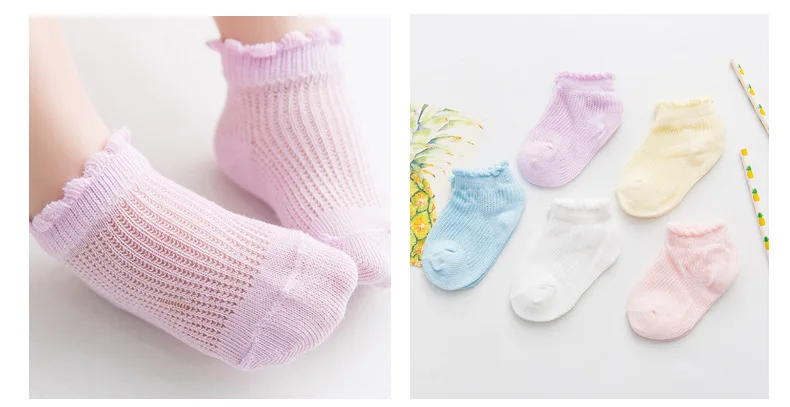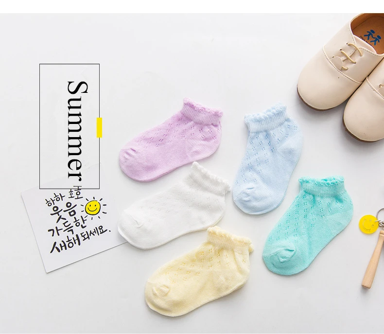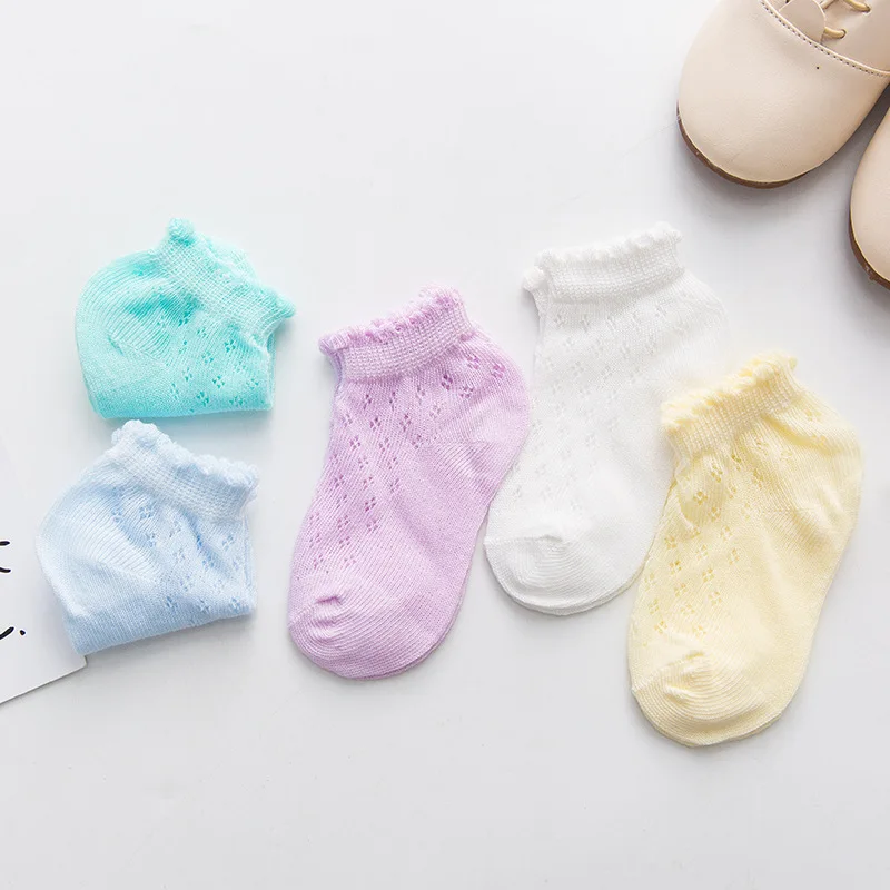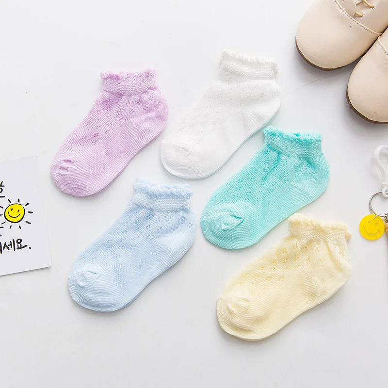 5 партЛот, детские носки для девочек, летние сетчатые хлопковые тонкие гольфы для мальчиков, модные эластичные белые кружевные детские носки с цветами для принцесс