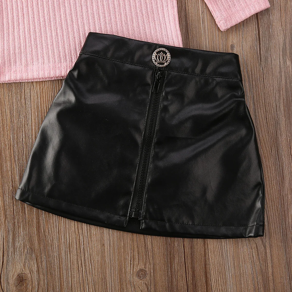 Свитер с открытыми плечами и юбка из ПУ кожи, на возраст 1-5 лет