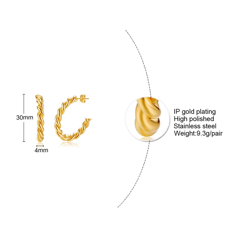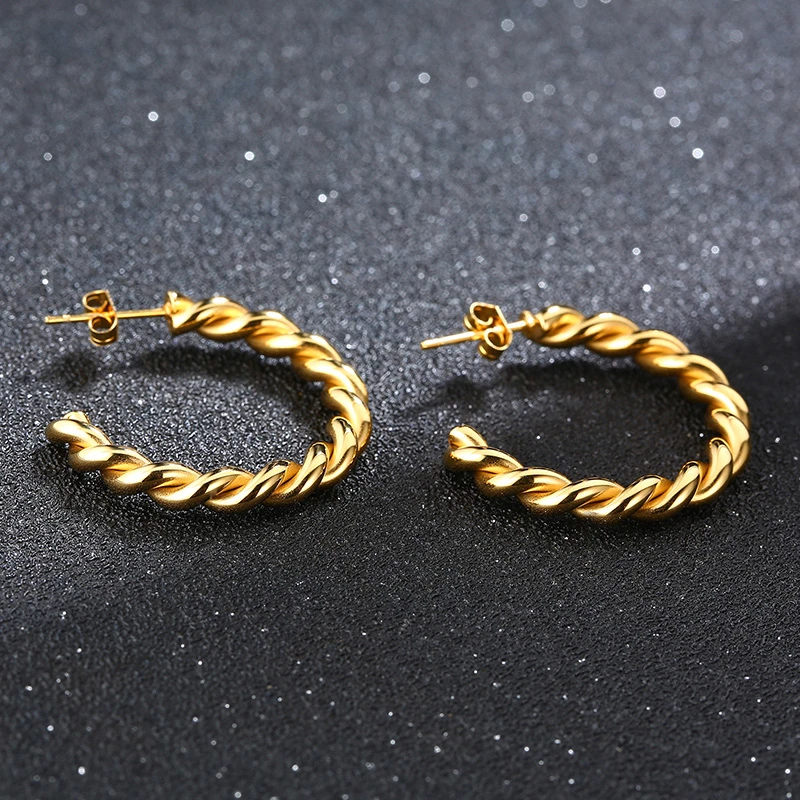 Женские витые серьги-кольца из нержавеющей стали, золотистого цвета