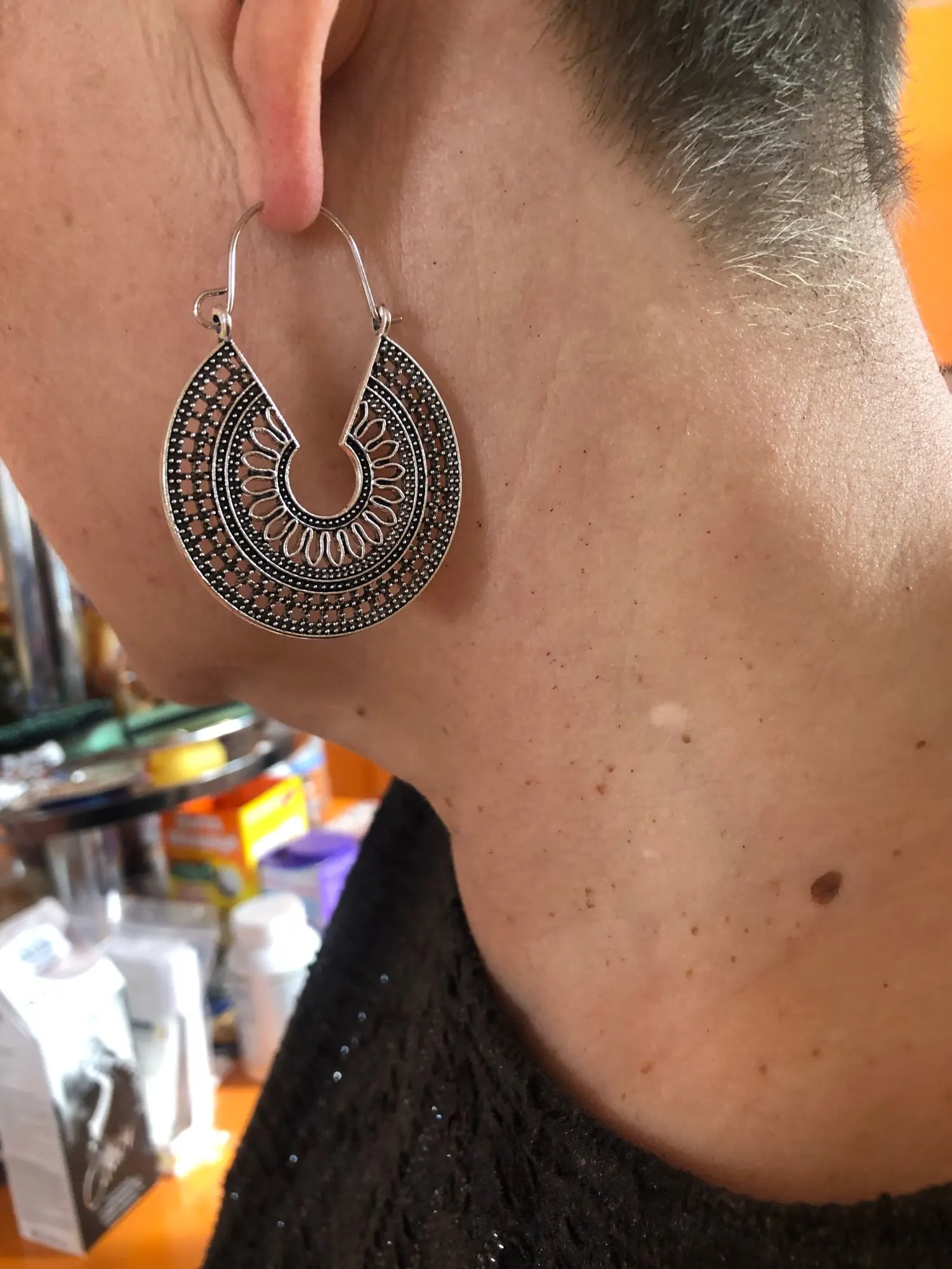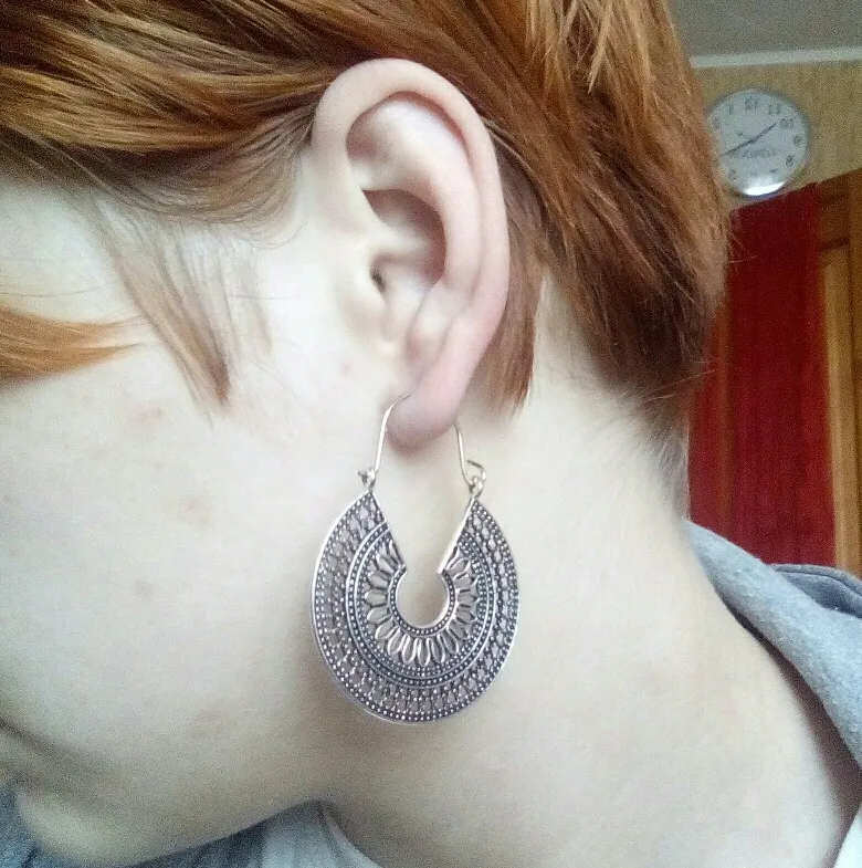 Винтажные золотистые серебристые металлические серьги-подвески huang, Женские Геометрические резные, Этническая Серьга индийские украшения, серьги
