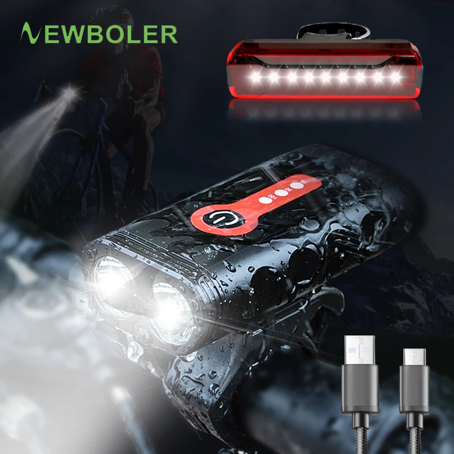 NEWBOLER Супер Яркий Велосипедный Фонарь XML-L2 Велосипедный Фонарь С USB Заряжаемый Задний Фонарь 18650 Аккумулятор велосипеда Передний Фонарь велосипеда фары Аксессуары