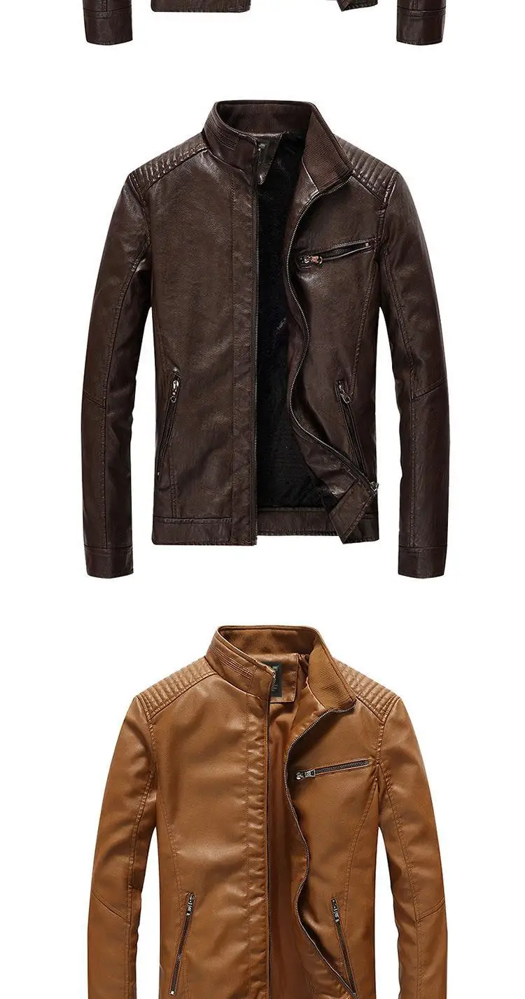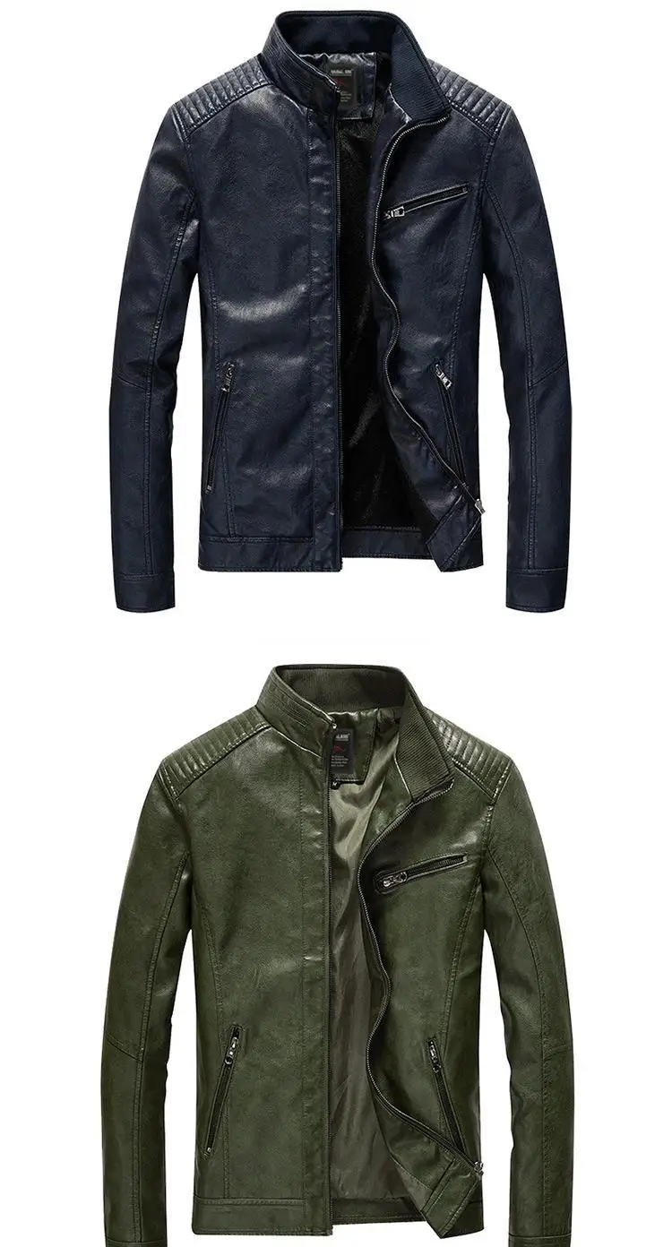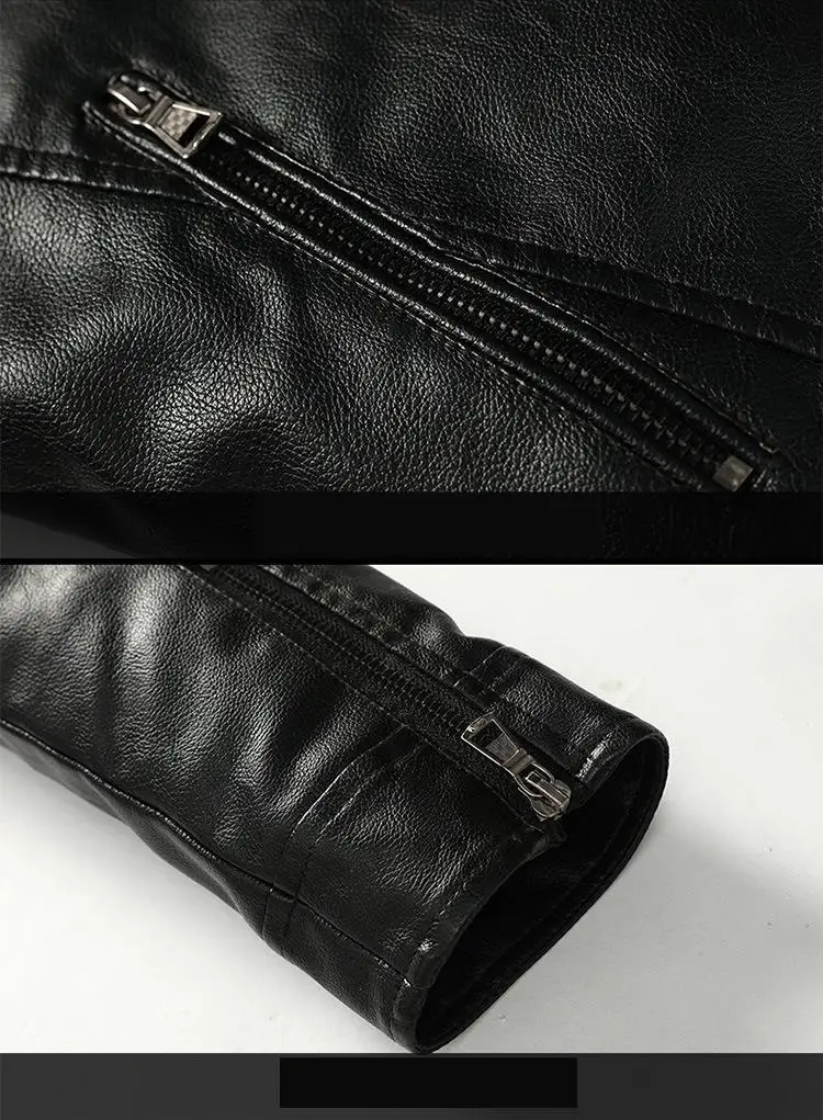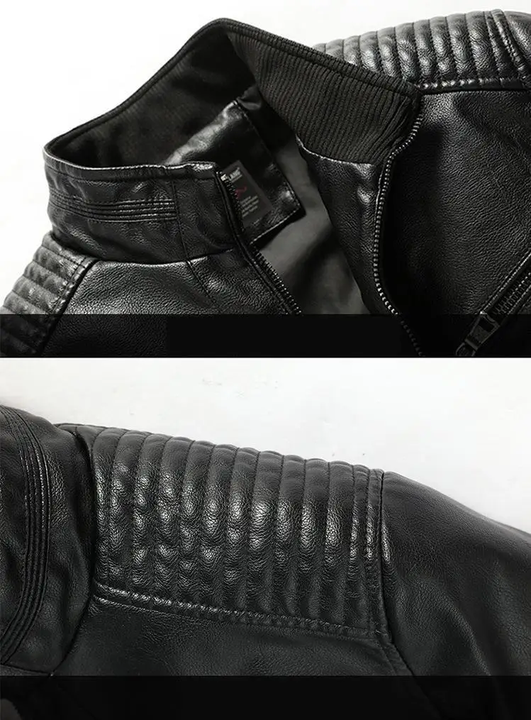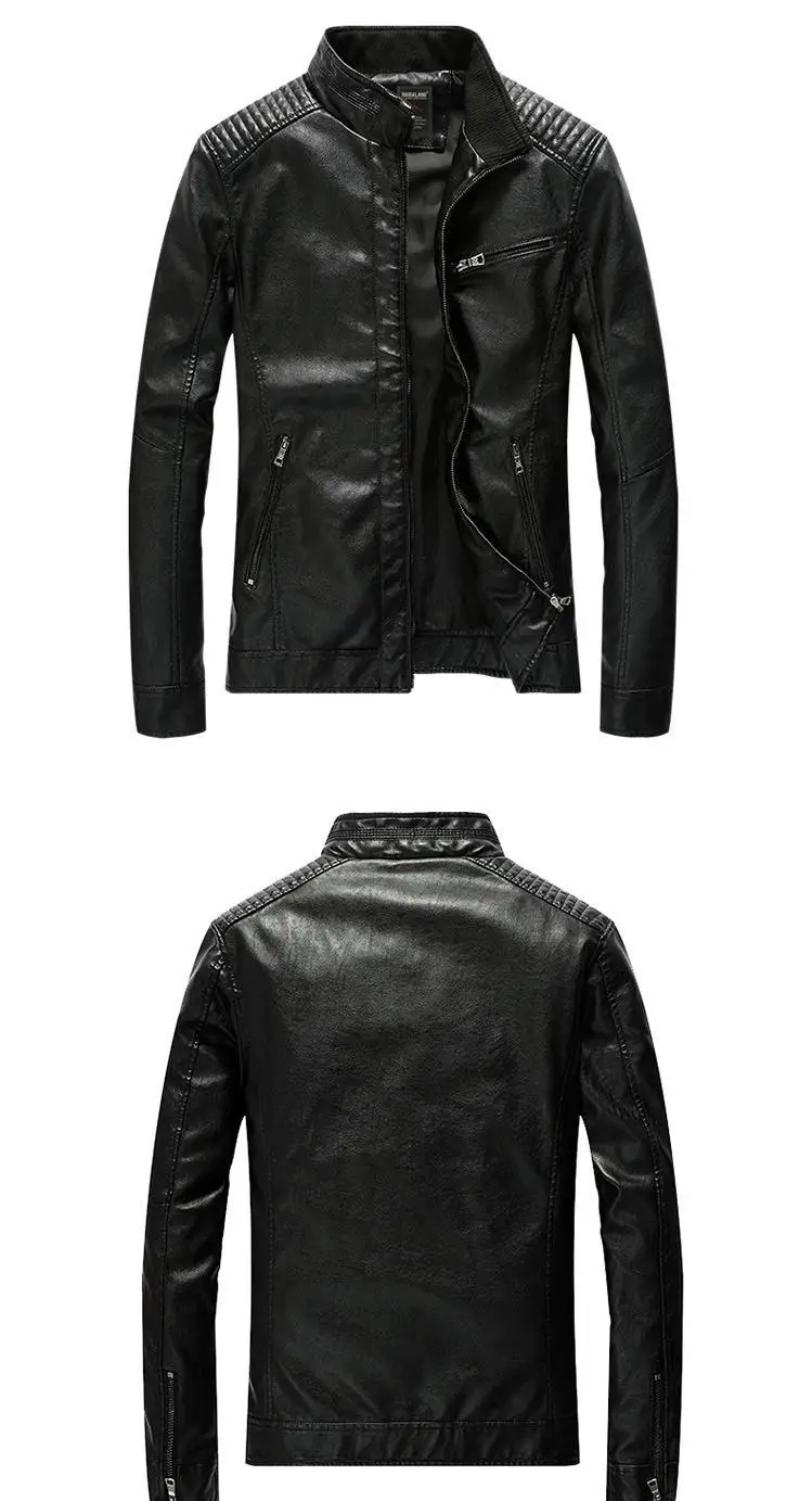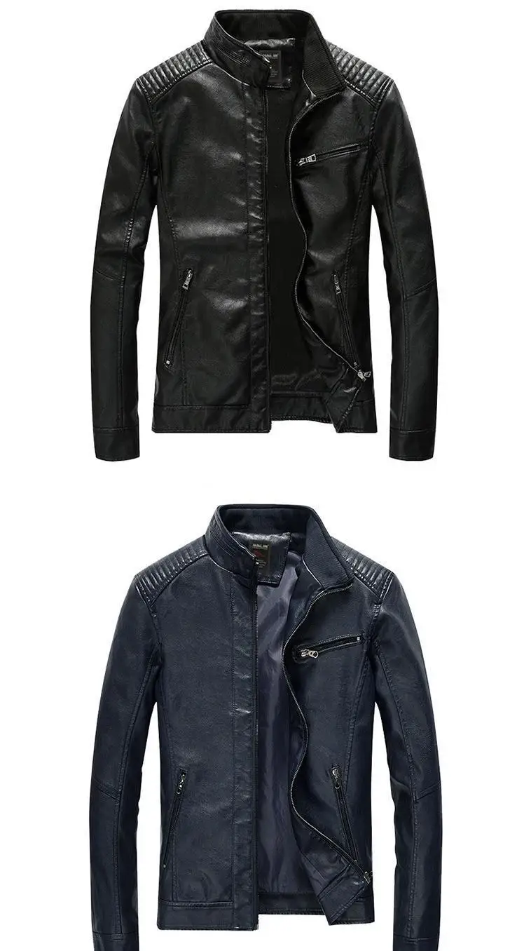 Мужская кожаная куртка с воротником-стойкой на молнии, Мужская Байк...