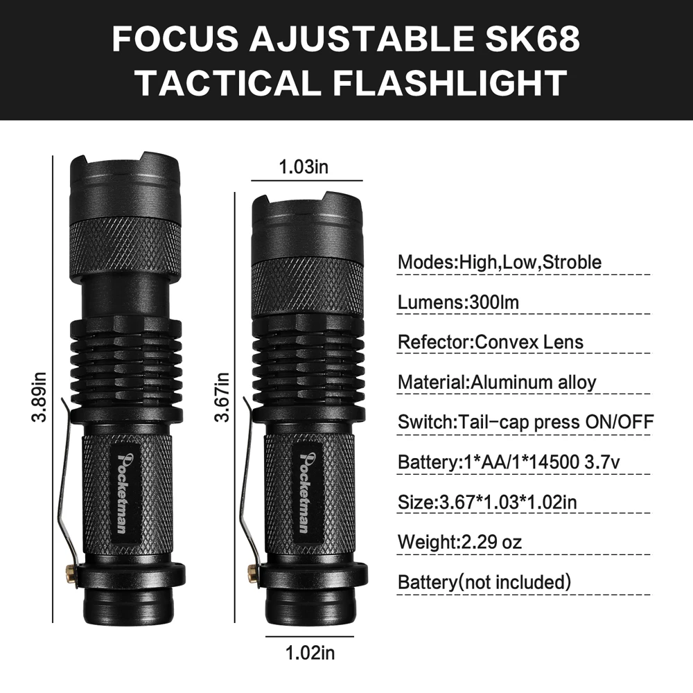 Особенности: 1. Корпус этого фонарика изготовлен из высококачественного алюминиевого сплава, и он имеет очень прочную конструкцию Внутренняя проводка применяет высокоэффективный усилитель цепи, и может использовать батареи в большой степени Отличный водонепроницаемый, подходит для внешней среды, неблагоприятных погодных условий, за исключением дайвинга Функция фокусировки, позволяющая фокусировать луч. Характеристики: Q5 фонарик: Супер Мини размер, яркий, ослепляющий эффект. Противоскользящий дизайн и водонепроницаемый дизайн. Регулируемый диапазон фокусировки для различного использования, растягивается для регулировки фокуса. Зажим для удобной переноски. Рабочее напряжение широкое и может использовать батареи в самой большой степени. Цвет: черный Отражатель: выпуклая линза Материал: алюминиевый сплав Модель светодиодный: BARND Q5 светодиодный Переключатель: кнопка включения/выключения/SOS Батарея: 1 * AA батарея или 14500 батарея (не входит в комплект) Размеры: 9,4*2,6*2,6 см Вес: 61 г