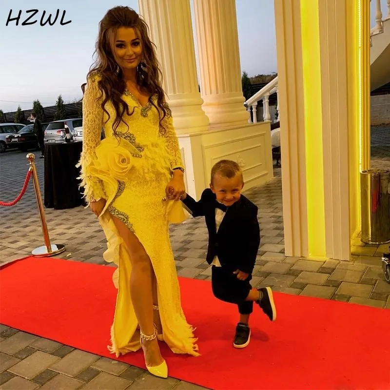 Сексуальные платья до щиколотки для выпускного вечера 2020 с перьям...