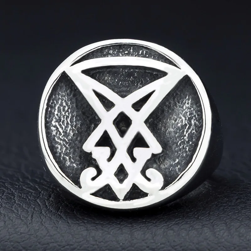 Модные Sigil of Lucifer кольцо для мужчин в стиле «панк-рок» уплотнение сатаны мужчины кольцо ювелирные изделия Размеры для детей в возрасте от 7 до 14 лет