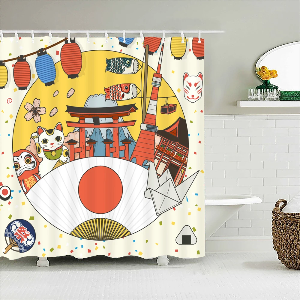 Занавески для ванной в японском стиле с рисунком кошки удачи, банные занавески в японском стиле для купания, накидка для душа с 12 крючками