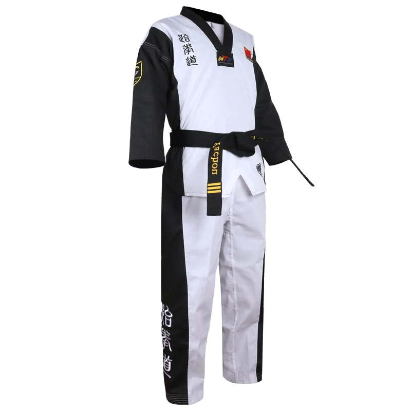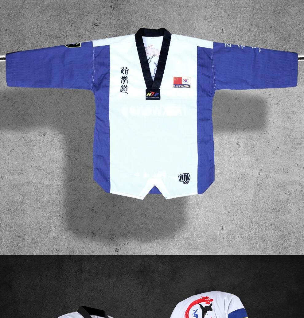 Высокое качество, цветная форма для тхэквондо, для детей, для взрослых, WTF, tae, kwon do, добок, каратэ, для женщин и мужчин, хороший хлопковый костюм для тхэквондо, черный с v-образным вырезом