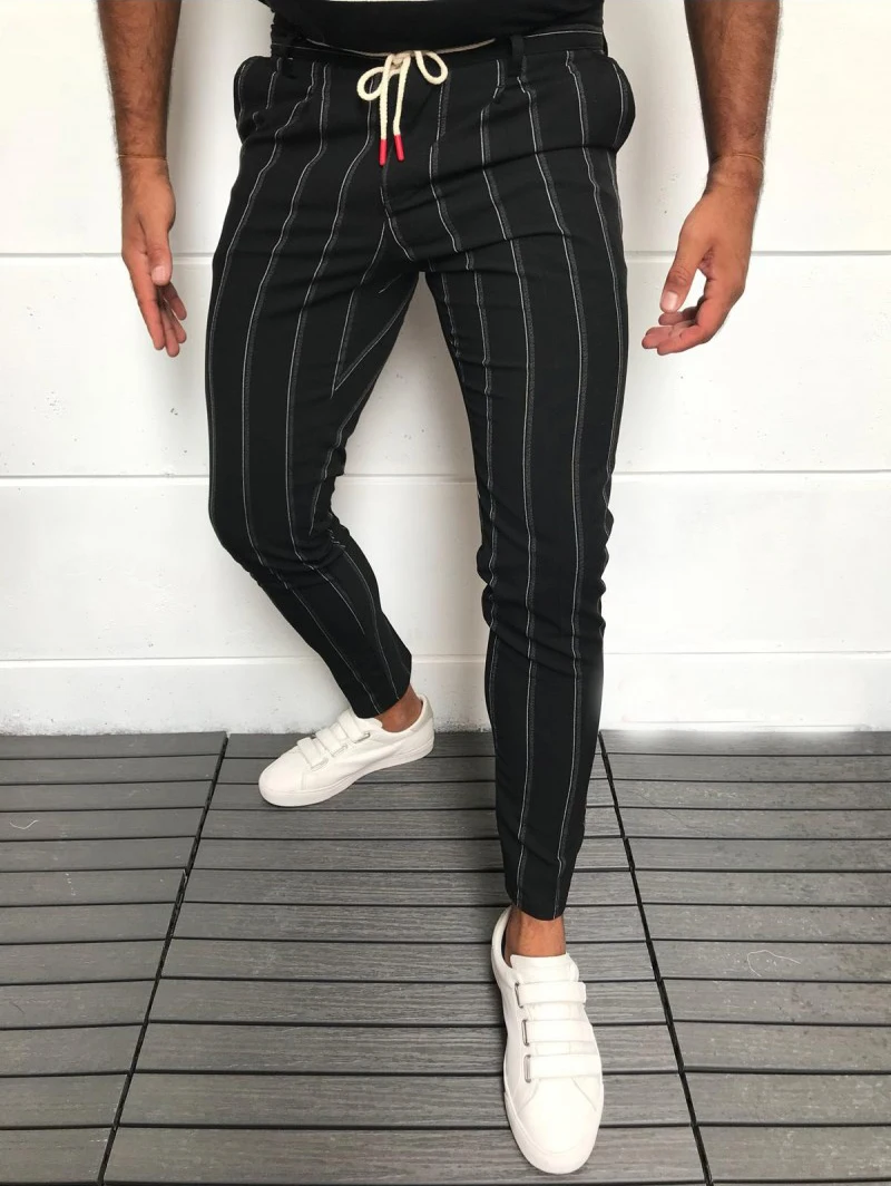 Модные мужские брюки-шаровары в полоску в английском стиле, брюки-шаровары для бега, облегающие повседневные брюки на завязках