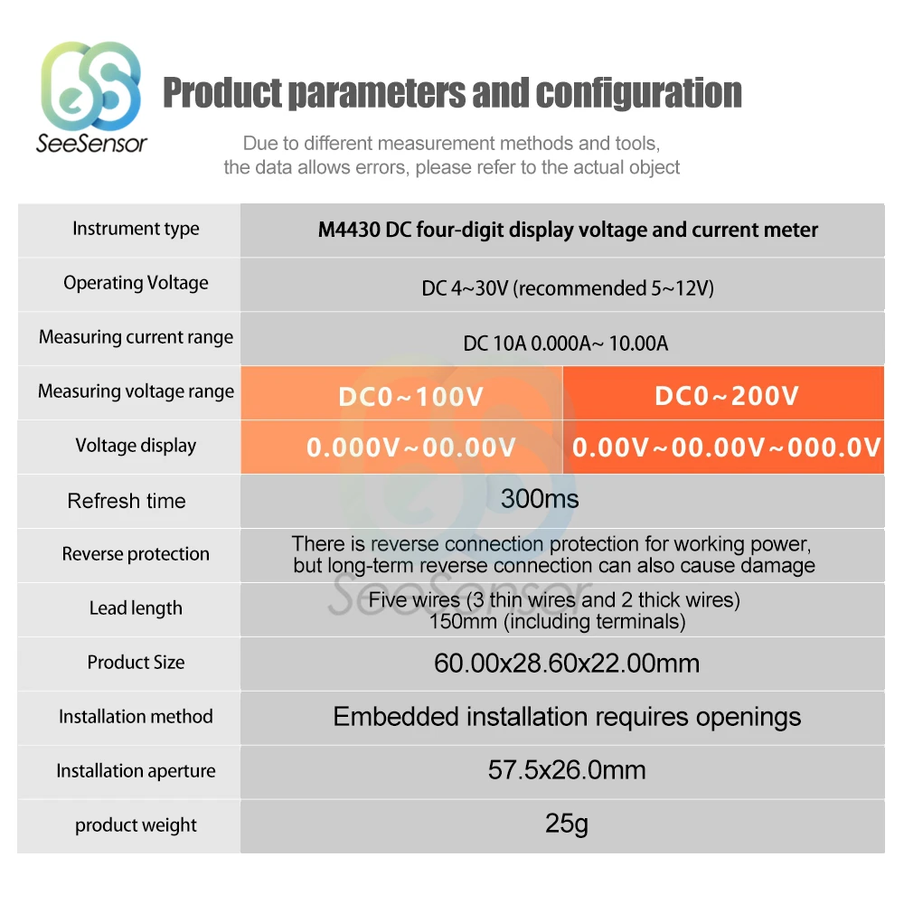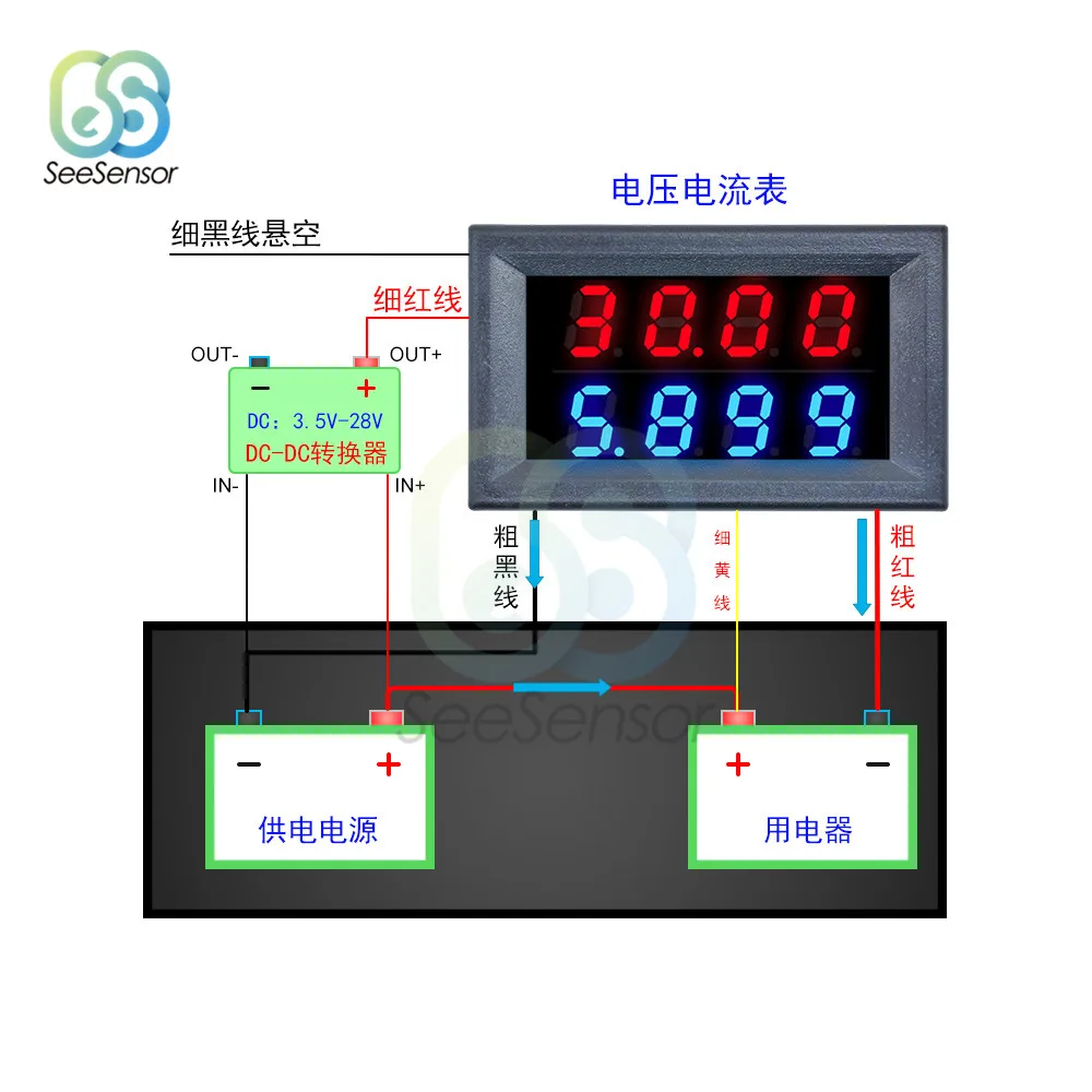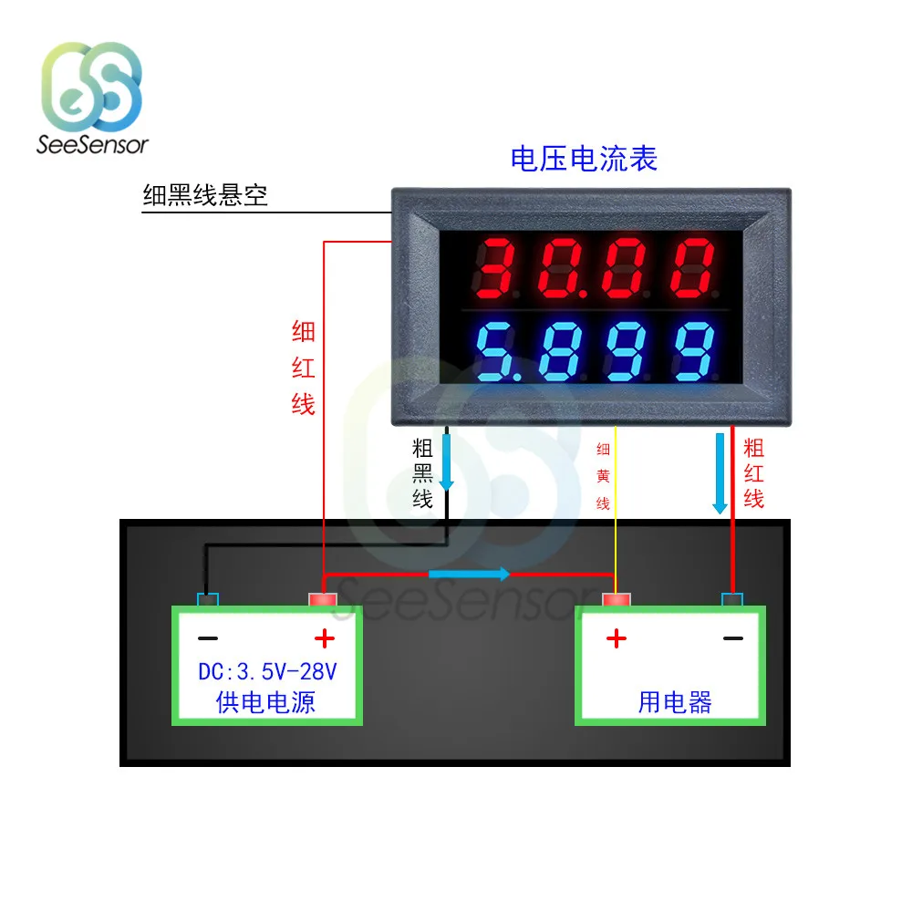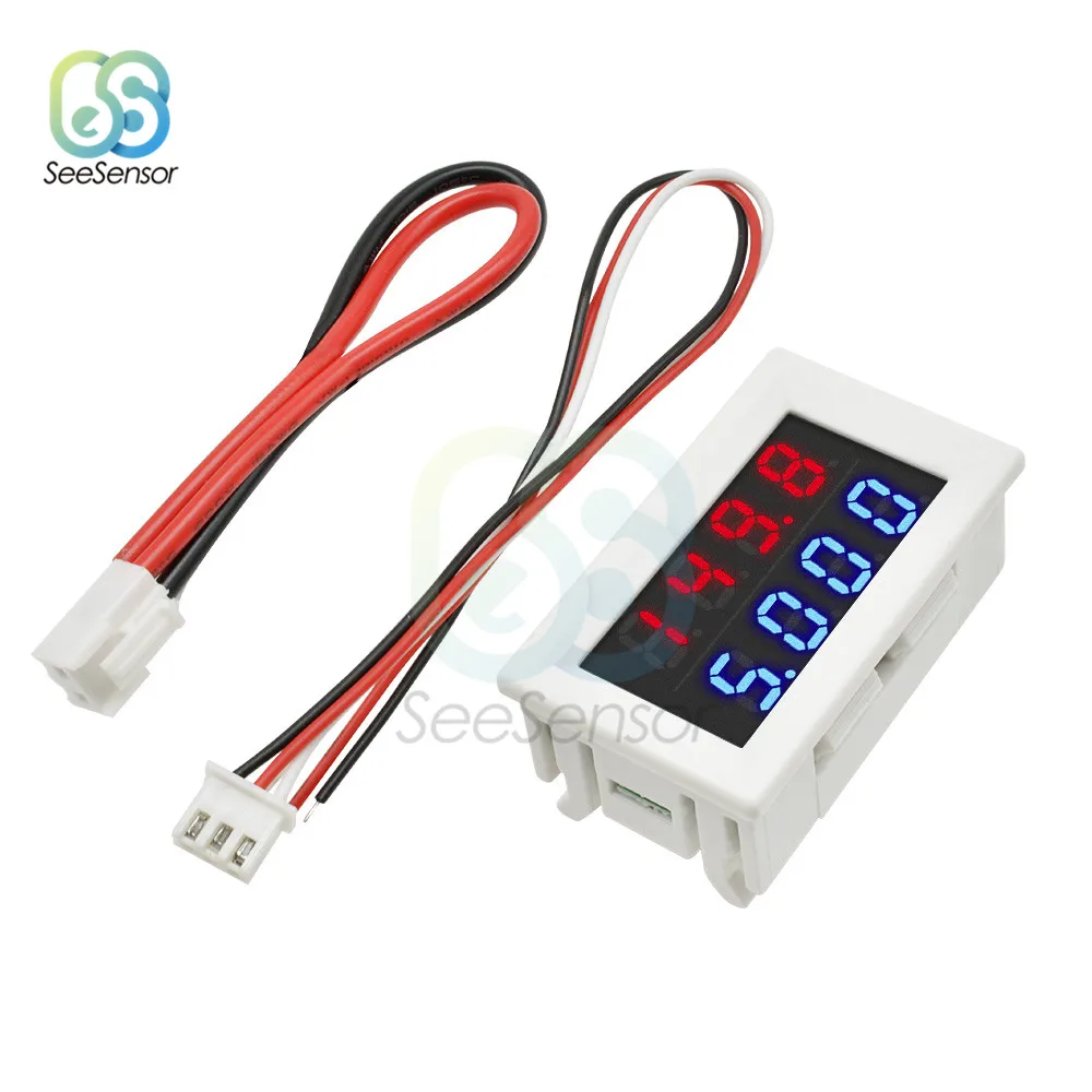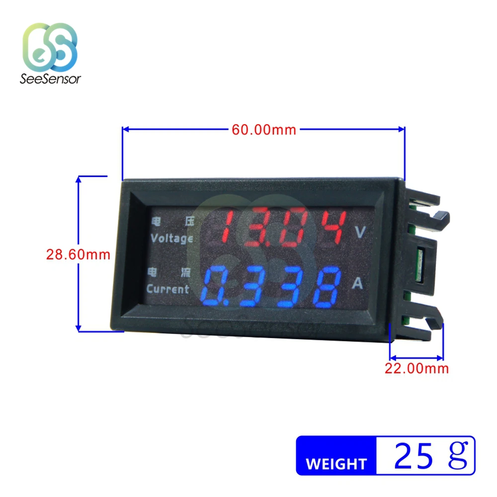 Двойной светодиодный вольтметр, амперметр, измеритель напряжения, постоянного тока, 100 в, 200 в, 10 А, тестер с монитором, детектор 4 бит, 5 проводов