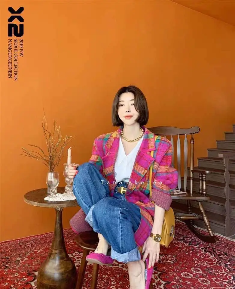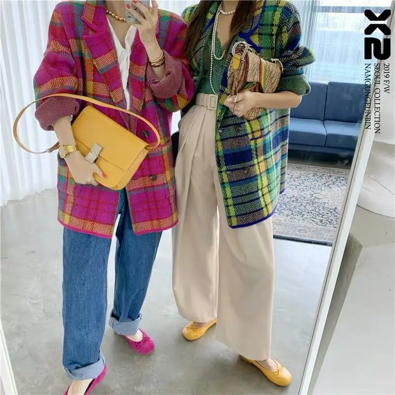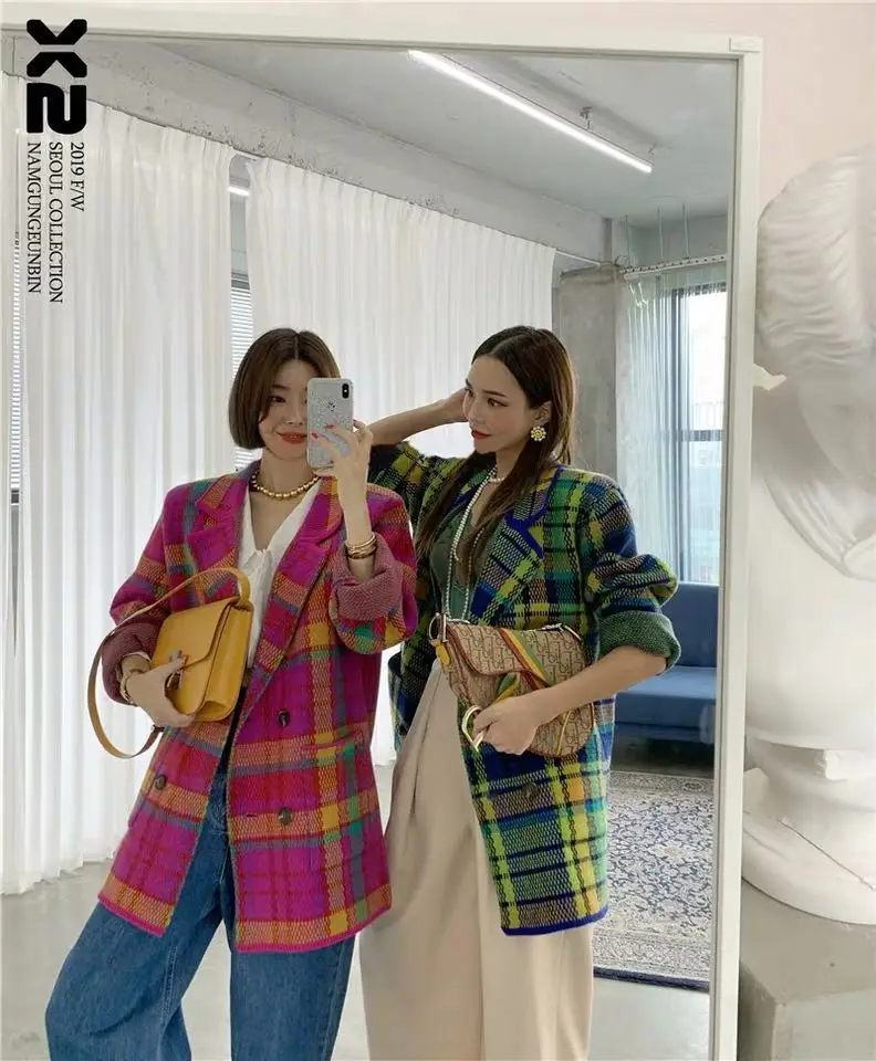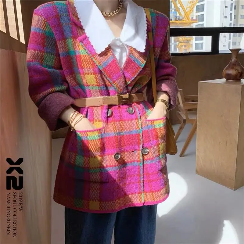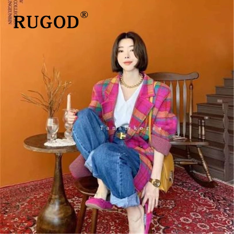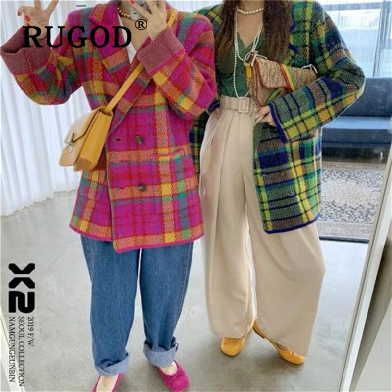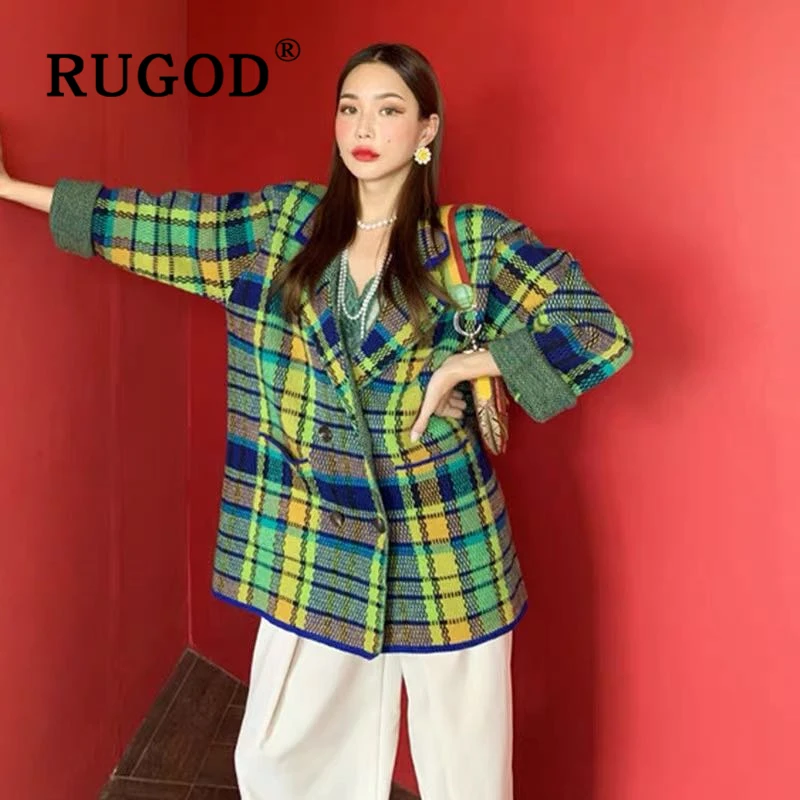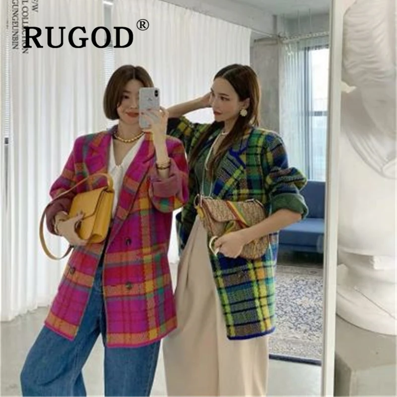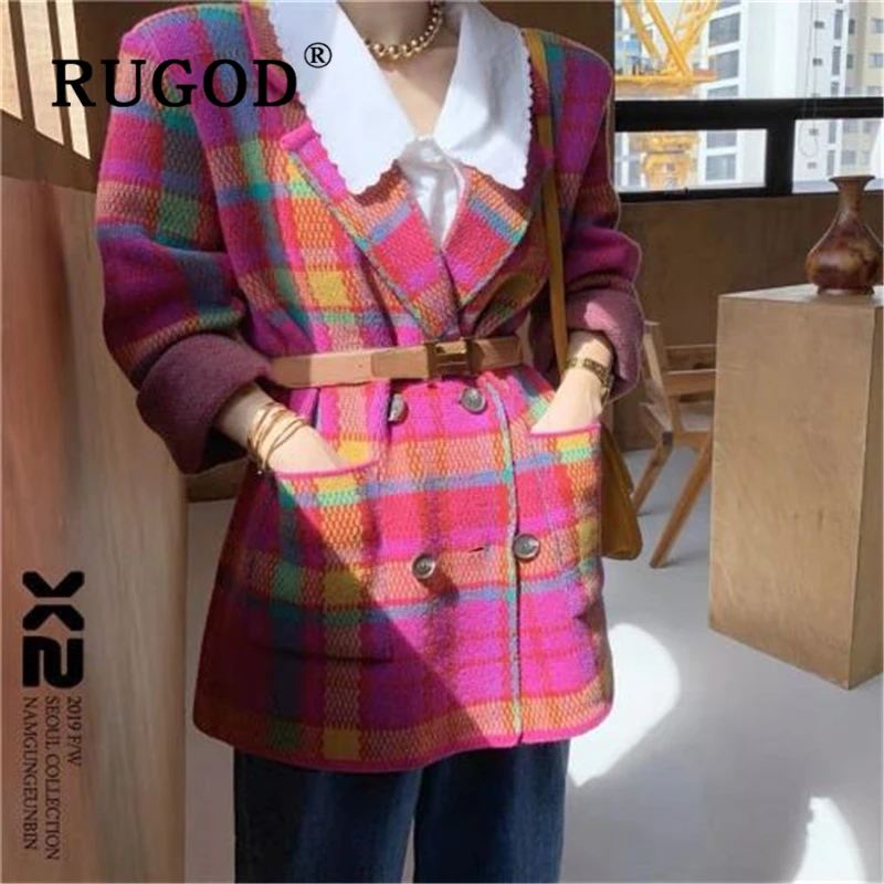Женское пальто в клетку RUGOD, повседневное, двубортное, большого размера, в Корейском стиле, YYQX09, 2020