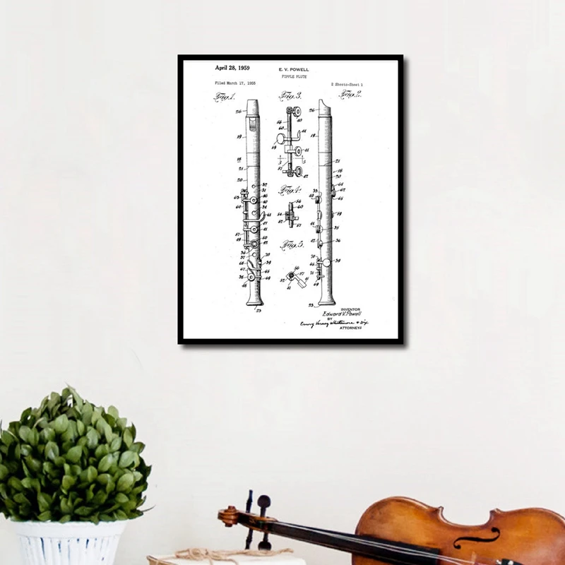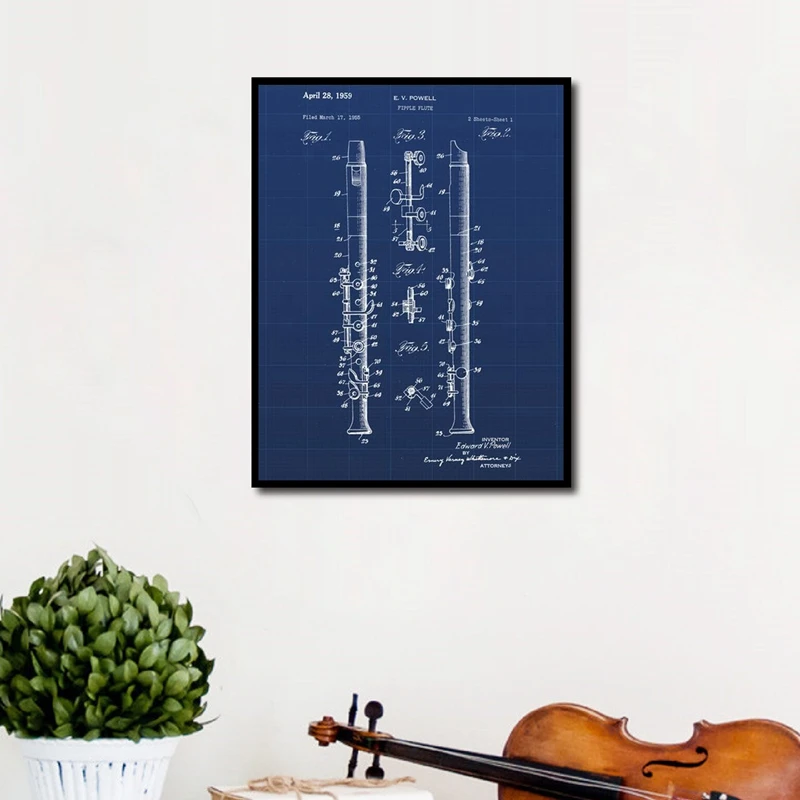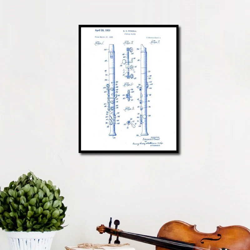 Fipple Flute Blueprint Art Painting Picture Home Decor