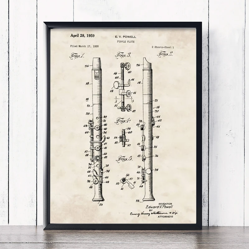 ВИНТАЖНЫЙ ПЛАКАТ Fipple Flute, принт музыкантов, подарки, музыкальный инструмент, патент, схема, холст, картины, картины, музыка, настенный художественный Декор